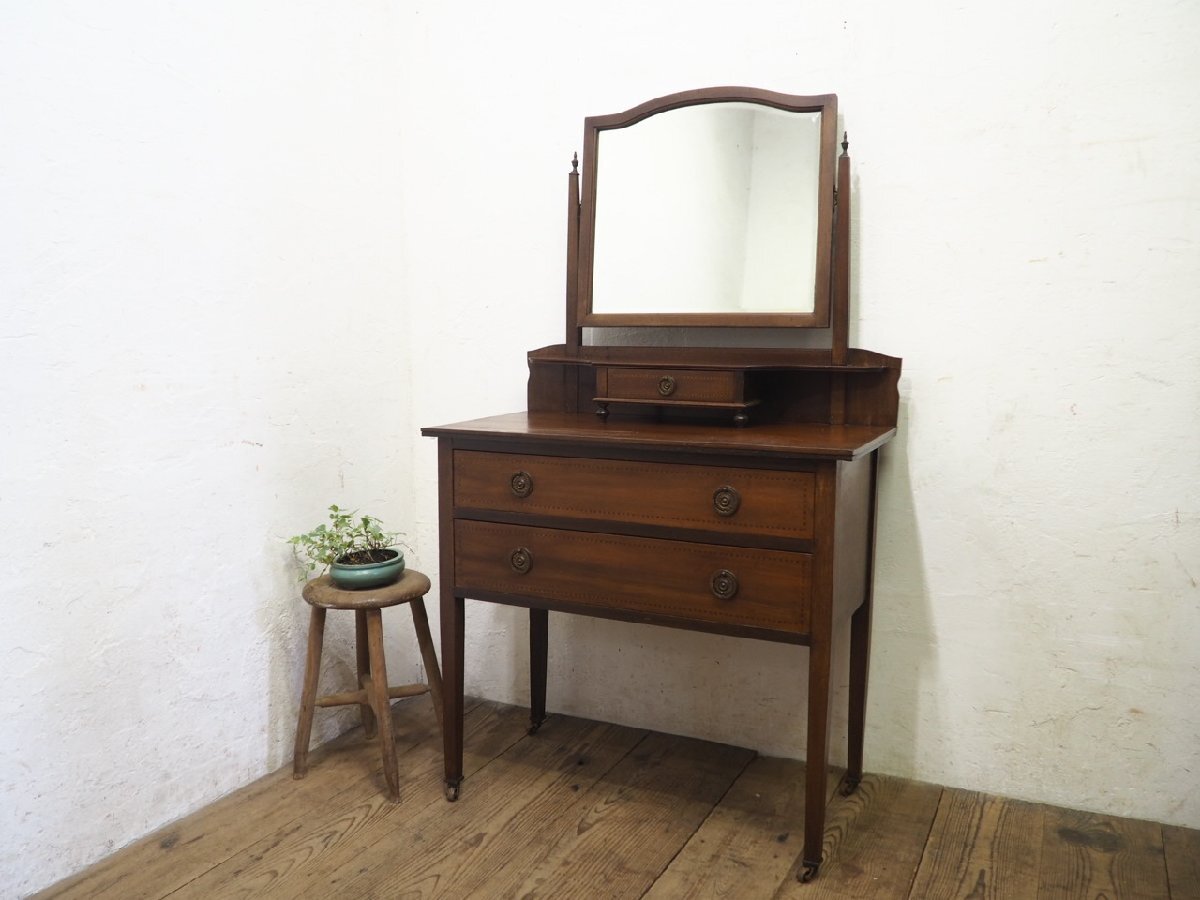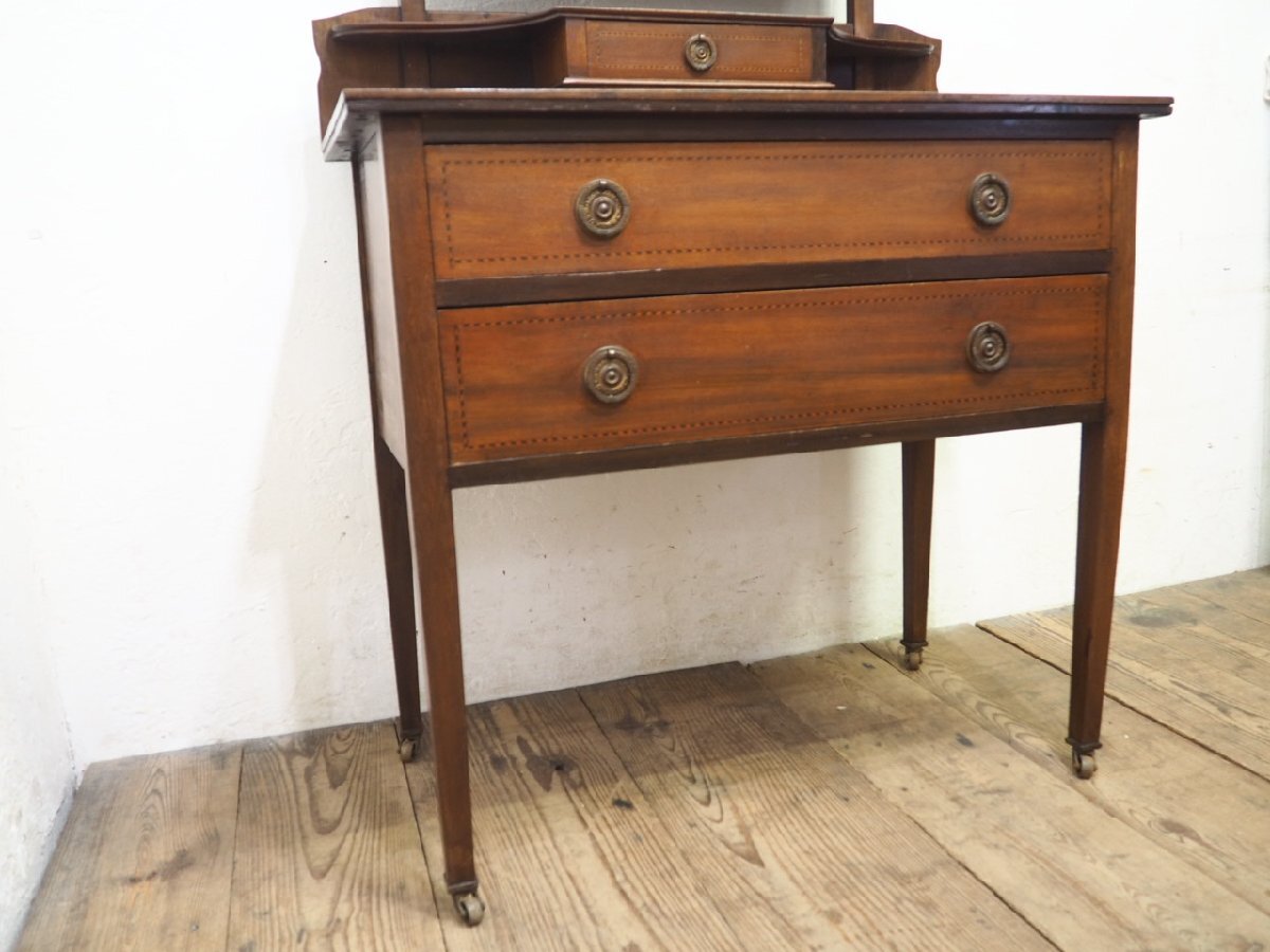 タ荷F0119◆H146cm×W84cm◆イギリスアンティーク◆キャスター付きの重厚な古い木製ドレッサー◆洋館 鏡台 姿見 ミラー 化粧台Q(ヤD)卸