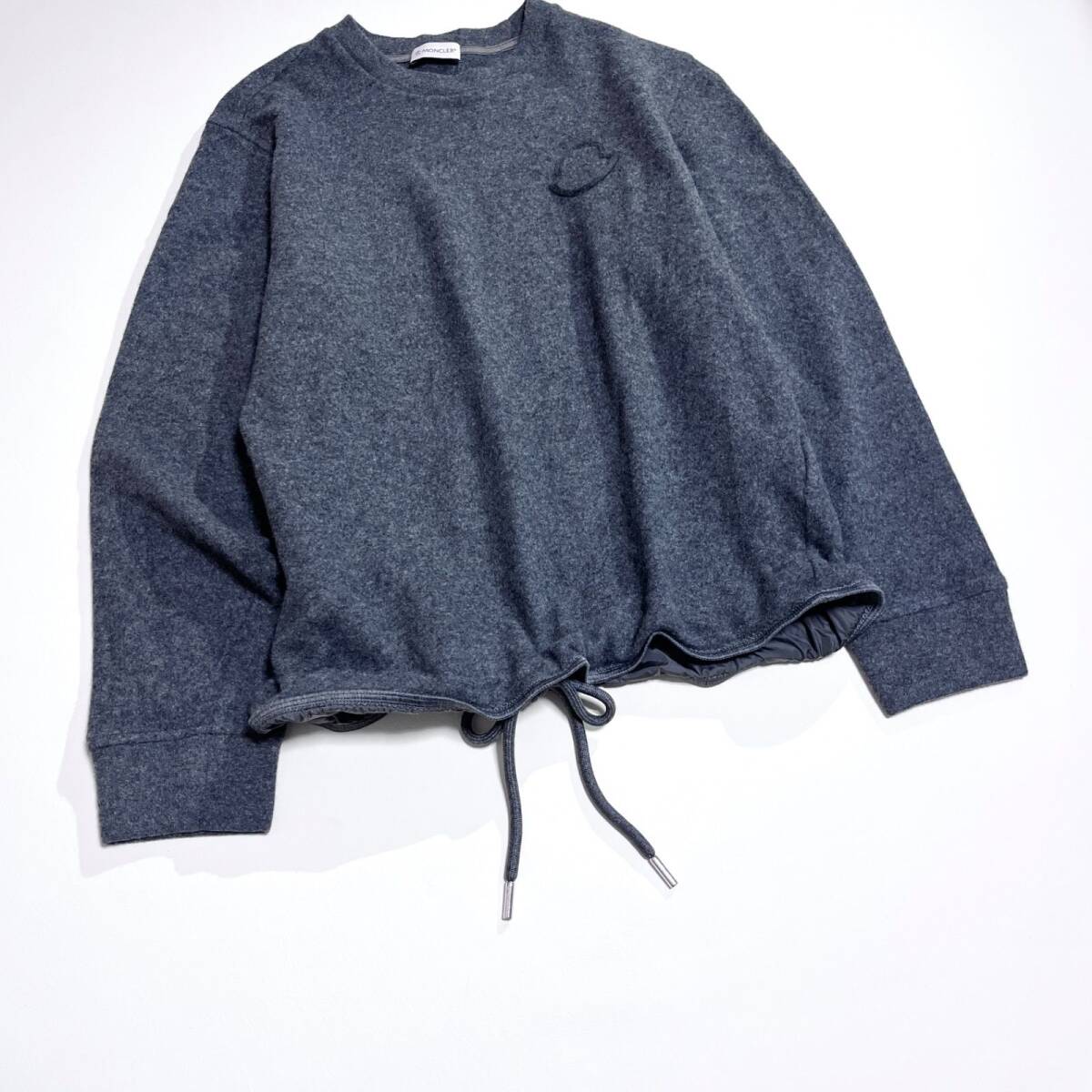 近年モデル スウェット トレーナー ワッペン ロゴ 刺繍 ウール セーター ニット M グレー 2022AW 長袖 ドローコード 長袖 ウール 毛 厚手 イタリア製 made in italy 羊毛 ラムウール 柔らかい