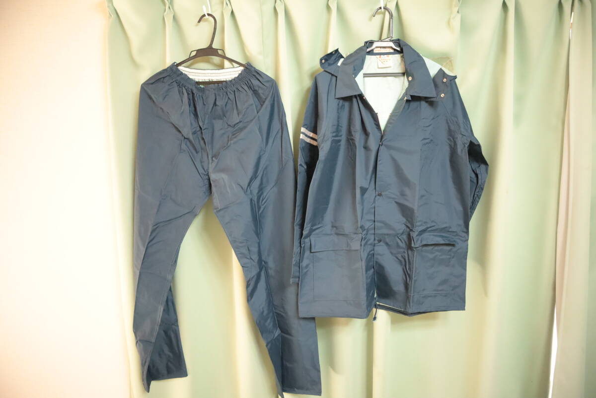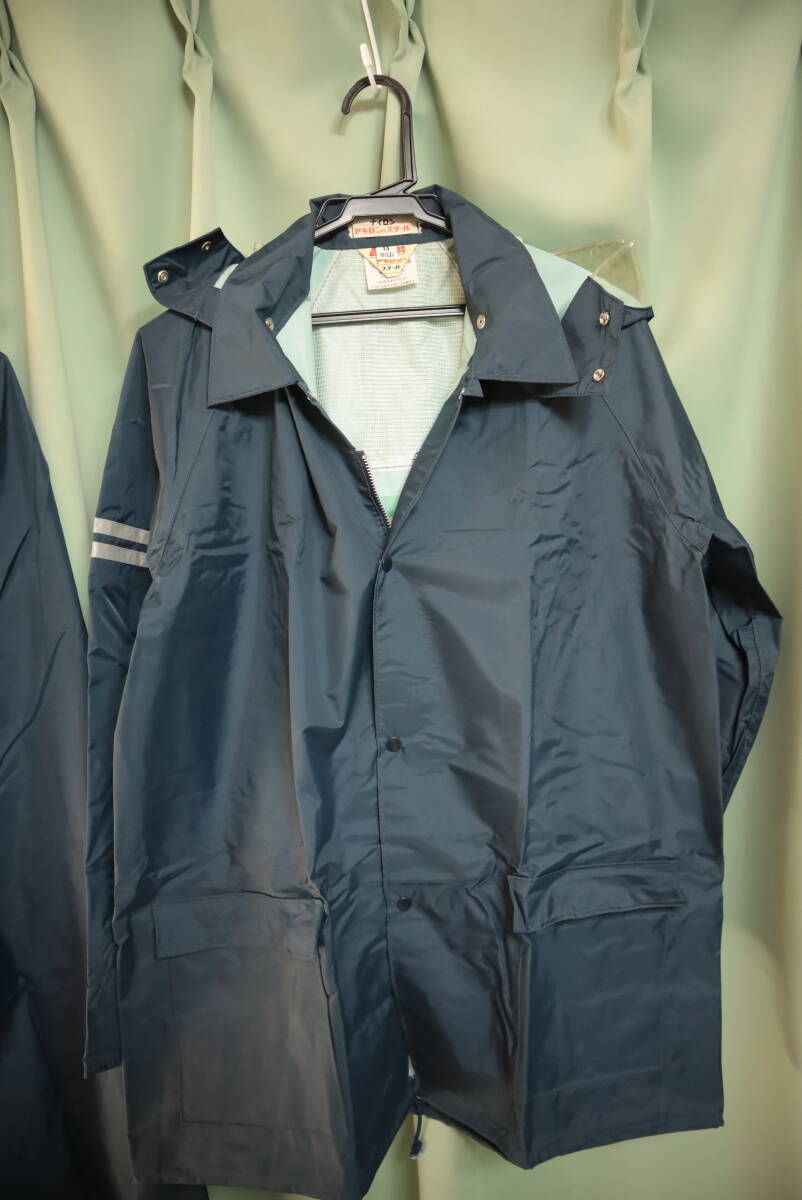 | ☆レトロ ゴム引き ネイビー レインコート合羽上下 LL☆ |