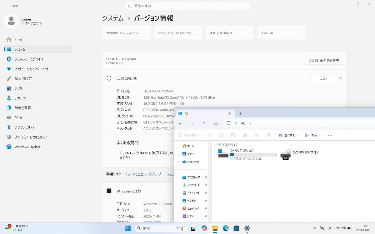 | OS | Windows 11 Home 64ビット版 | ||||||||||||||||||||||||||||||