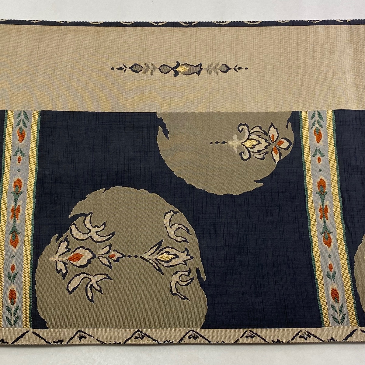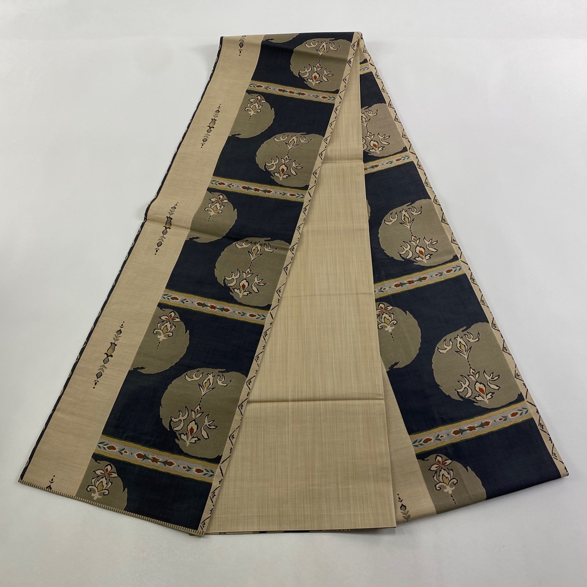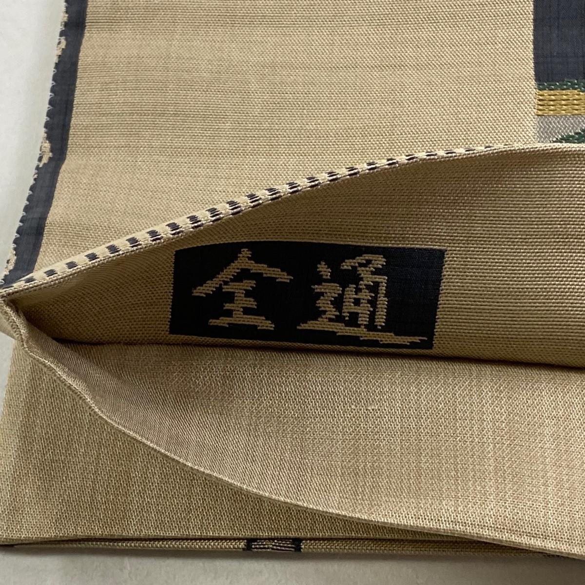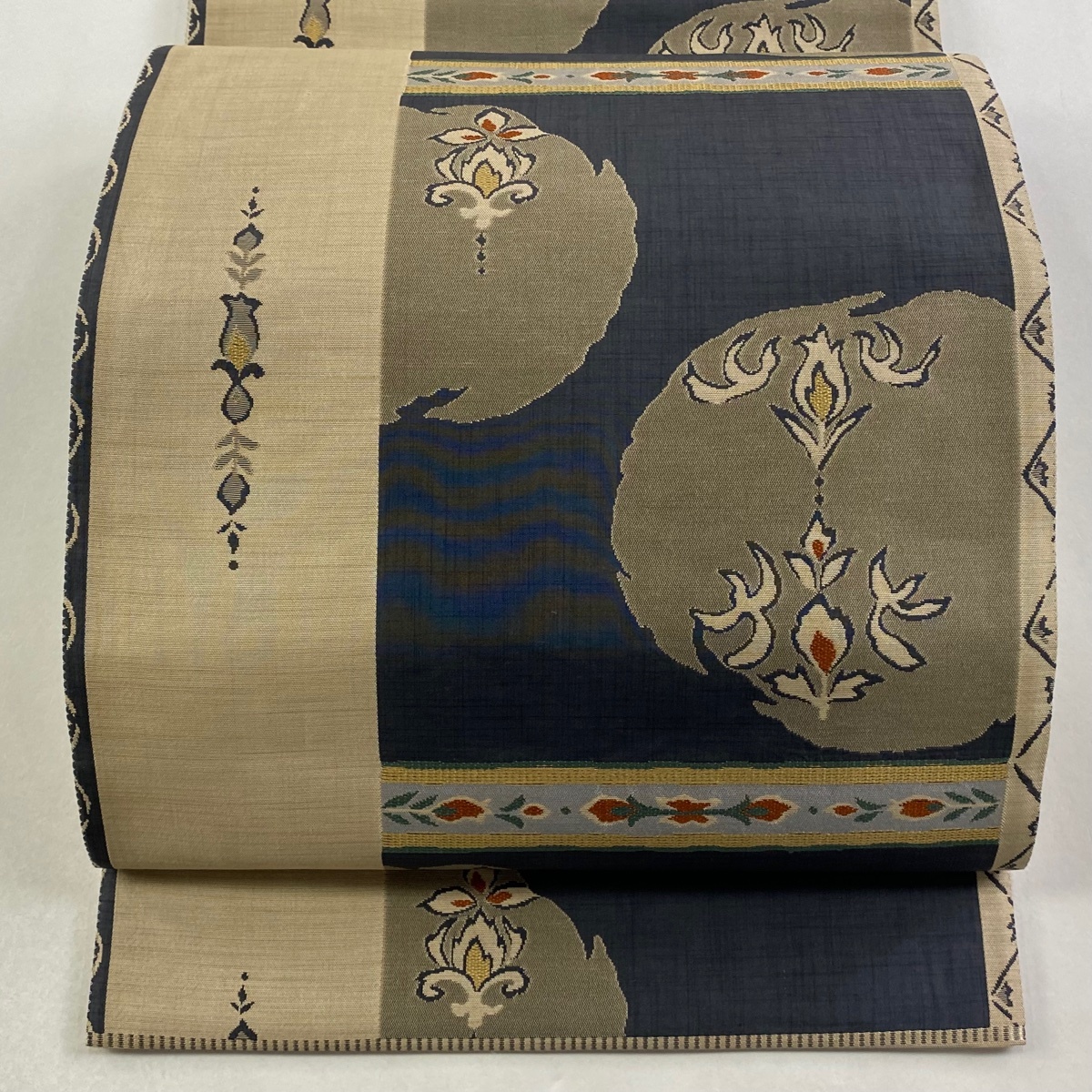 | 袋帯 秀品 草花 幾何学 ベージュ 全通 正絹 【中古】 |
