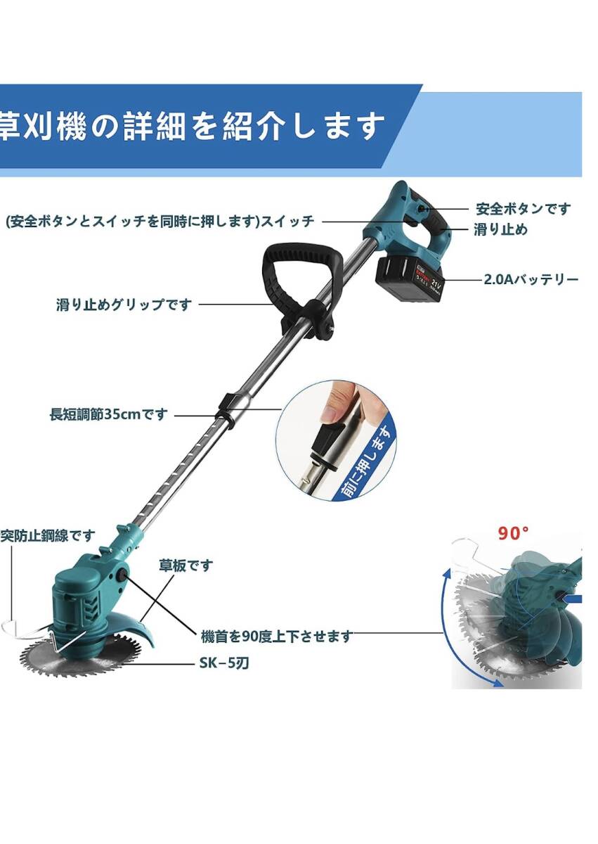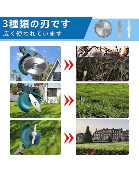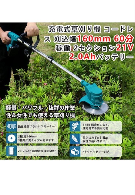草刈り機 充電式草刈機 電動草刈り機 マキタ18vバッテリー互換 6インチ コードレス 刈払機 [軽量1.5kg/3種類のカッティング/2.0Ah
