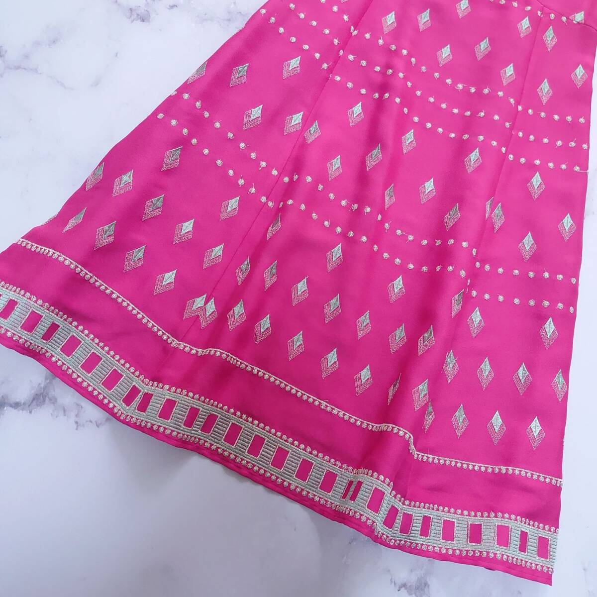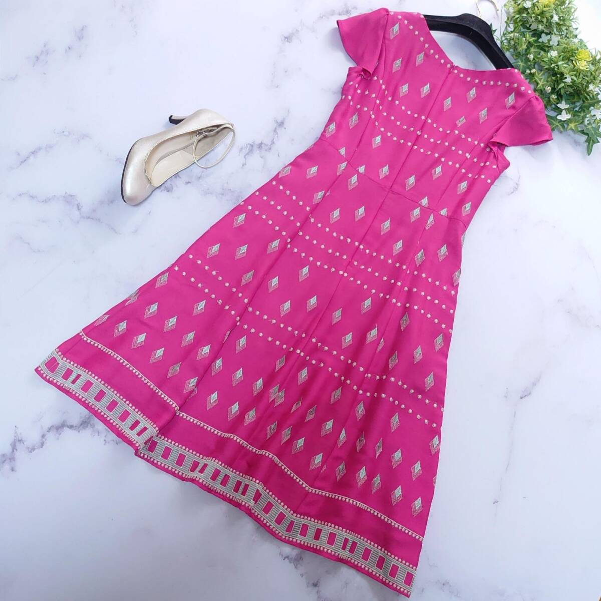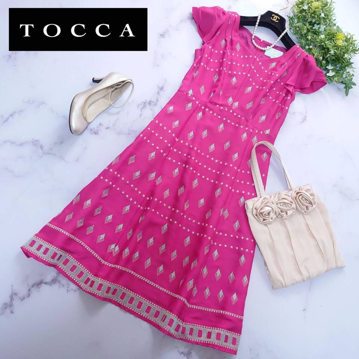 TOCCA トッカ KARAMAY カラマイ エンブロイダリーワンピース 刺繍 フレア Aライン 半袖 膝丈 ピンク系 サイズ2 M相当 ドレス 背中ファスナー レディース