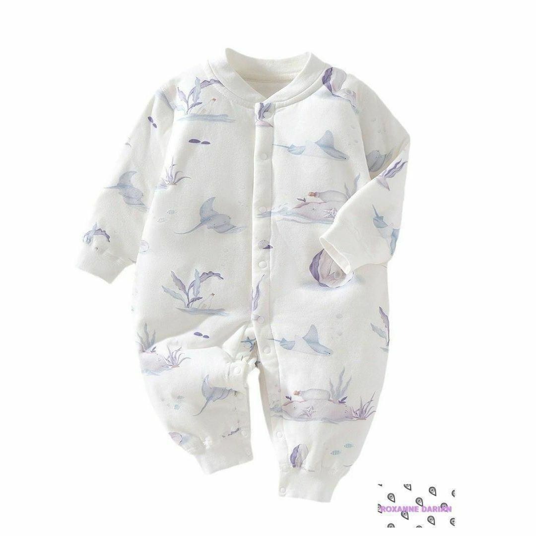 新生児のための厚手のロンパース。シンプルで可愛い白系アニマル柄が特徴で、男の子・女の子を問わずお使いいただけます。産まれたての赤ちゃんに最適なコットン素材を使用し、優しい肌触りが自慢です。長袖で寒い季節にもピッタリ。出産祝いやプレゼントにもおすすめです。赤ちゃんの可愛らしさを引き立てる一着を、ぜひお楽しみください。