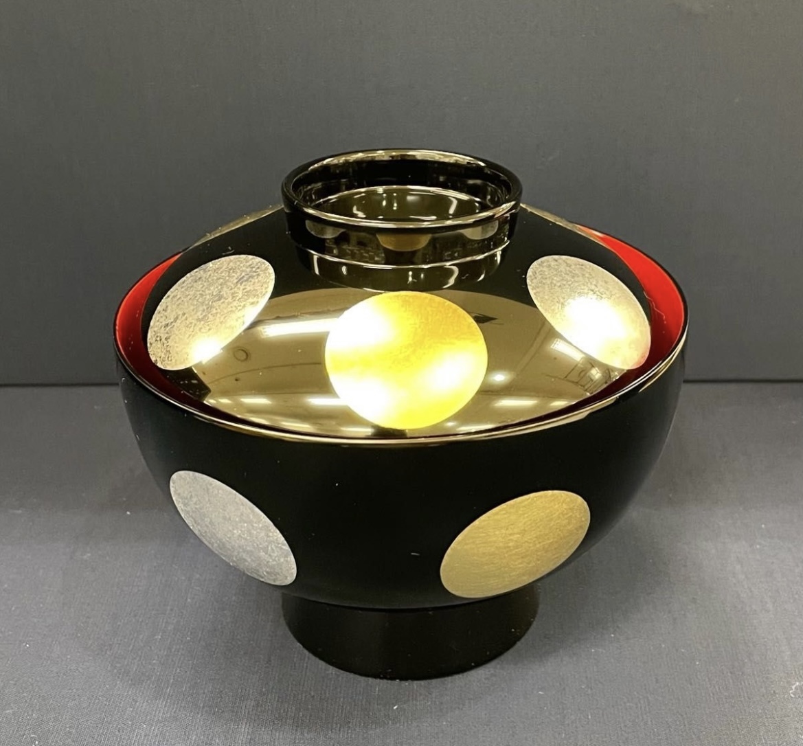 越前漆器■越前塗 雑煮椀 煮物椀 黒内朱 日月箔【1客】★国産★本漆手塗り【新品】