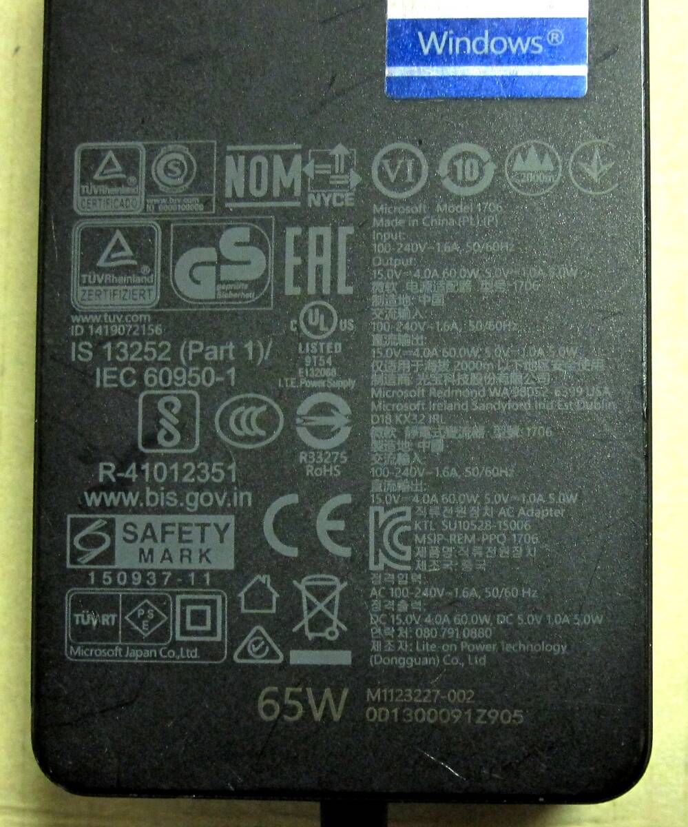 Microsoft Surface用純正ACアダプタ モデル1706 (15V 4A/5V 1A) 中古