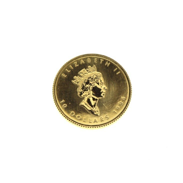 カナダ王室造幣局発行の メープルリーフ金貨(K24/純金 99.99%) です。