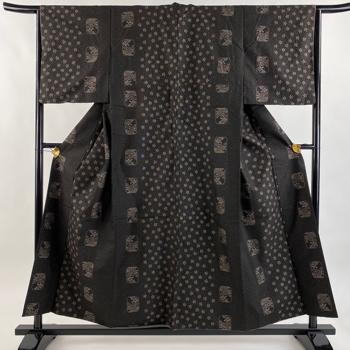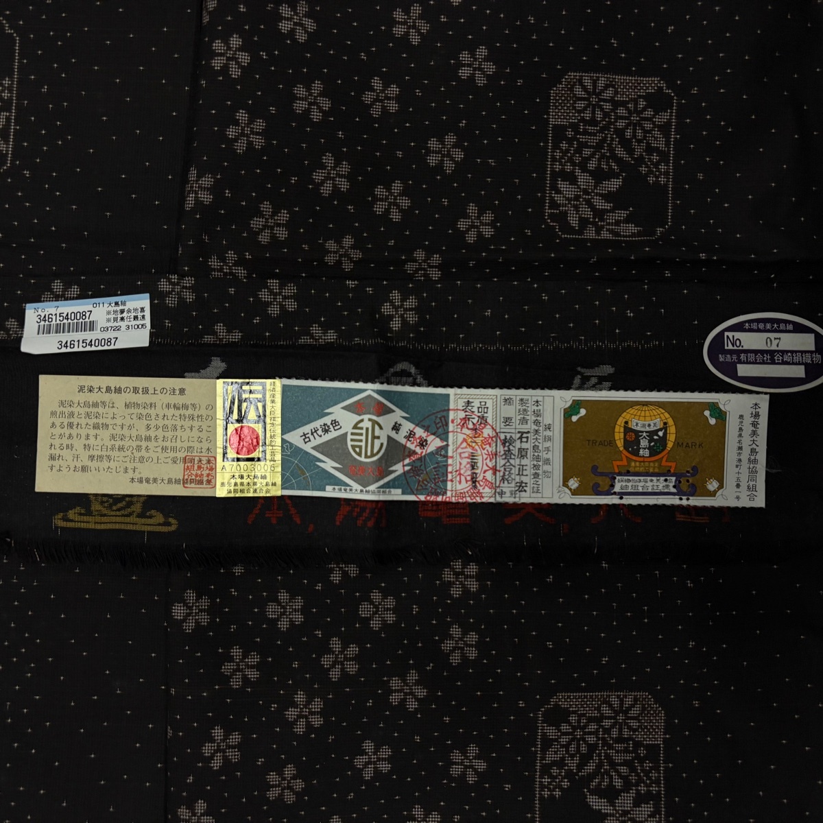 | 大島紬 名品 証紙 純泥染 破れ色紙 草花 焦茶色 袷 身丈156 裄丈64 M 正絹 【中古】 |