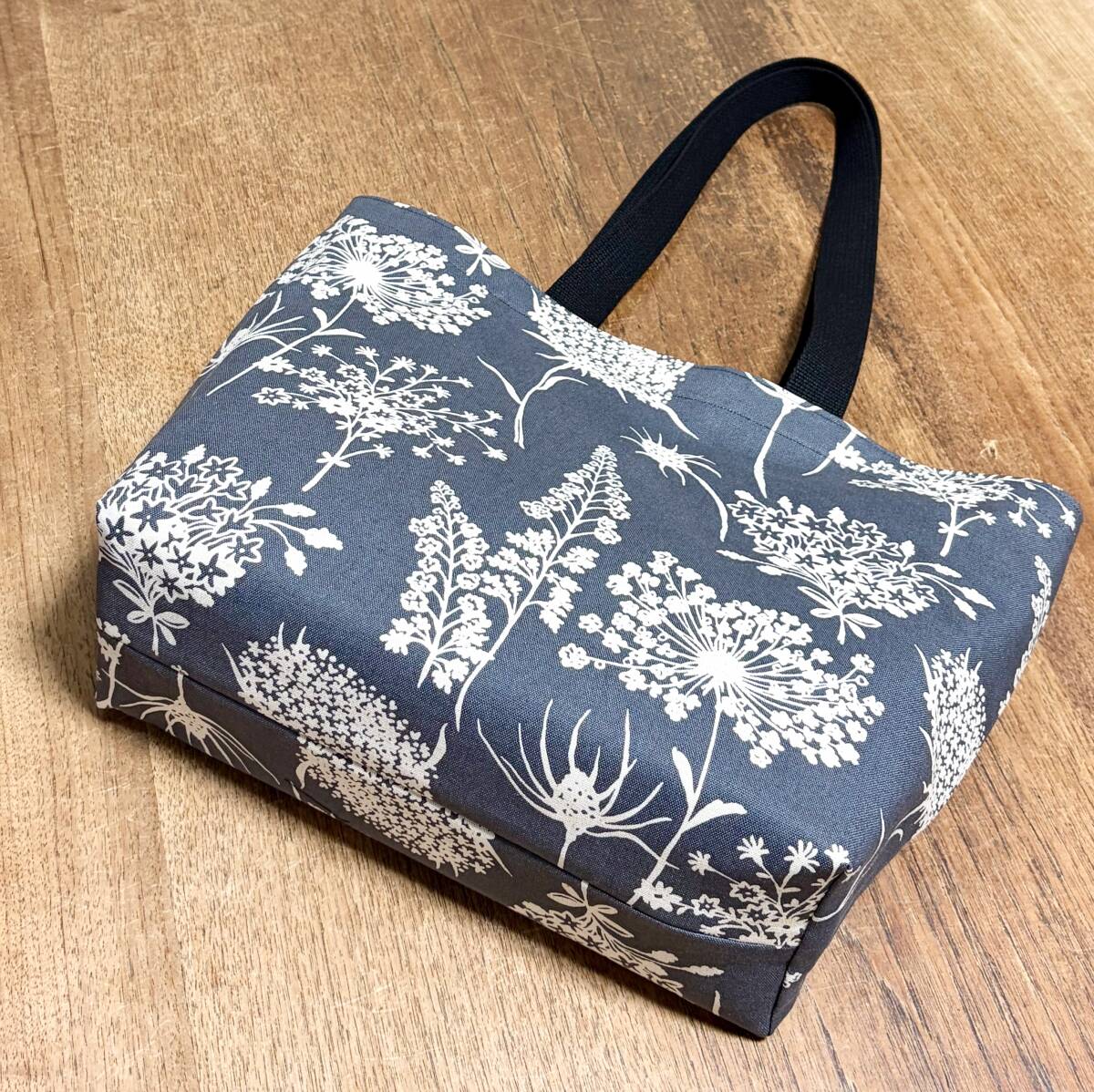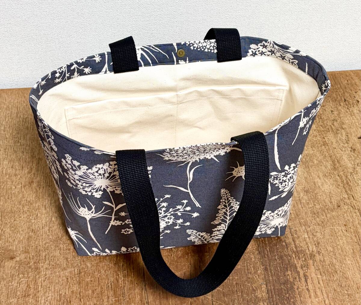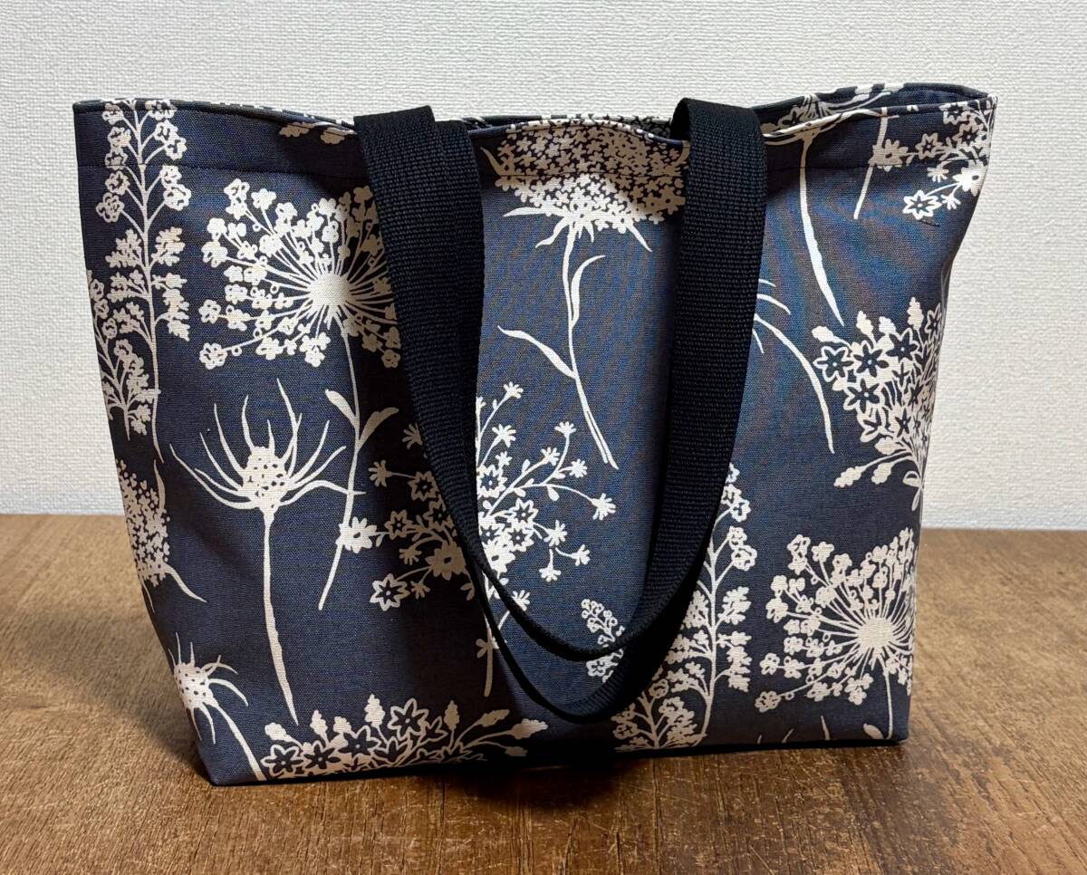★ハンドメイド★肩掛けトートバッグ 綿麻キャンバス う早この布 シャドーフラワー 内布10号帆布★
