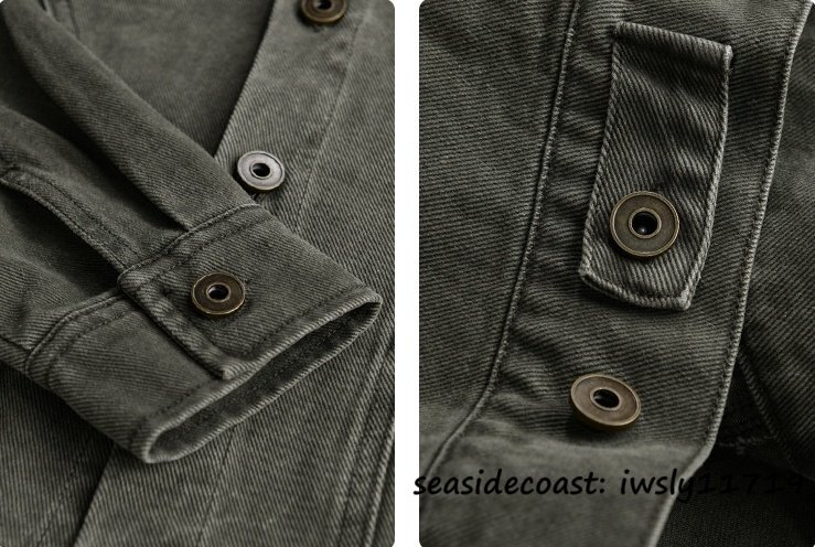 春秋新品*ワークシャツ メンズ 無地 長袖シャツ アメカジ ワークジャケット ミリタリー 古着風 アウター ジャンパー ゆったり オリーブ 3XL