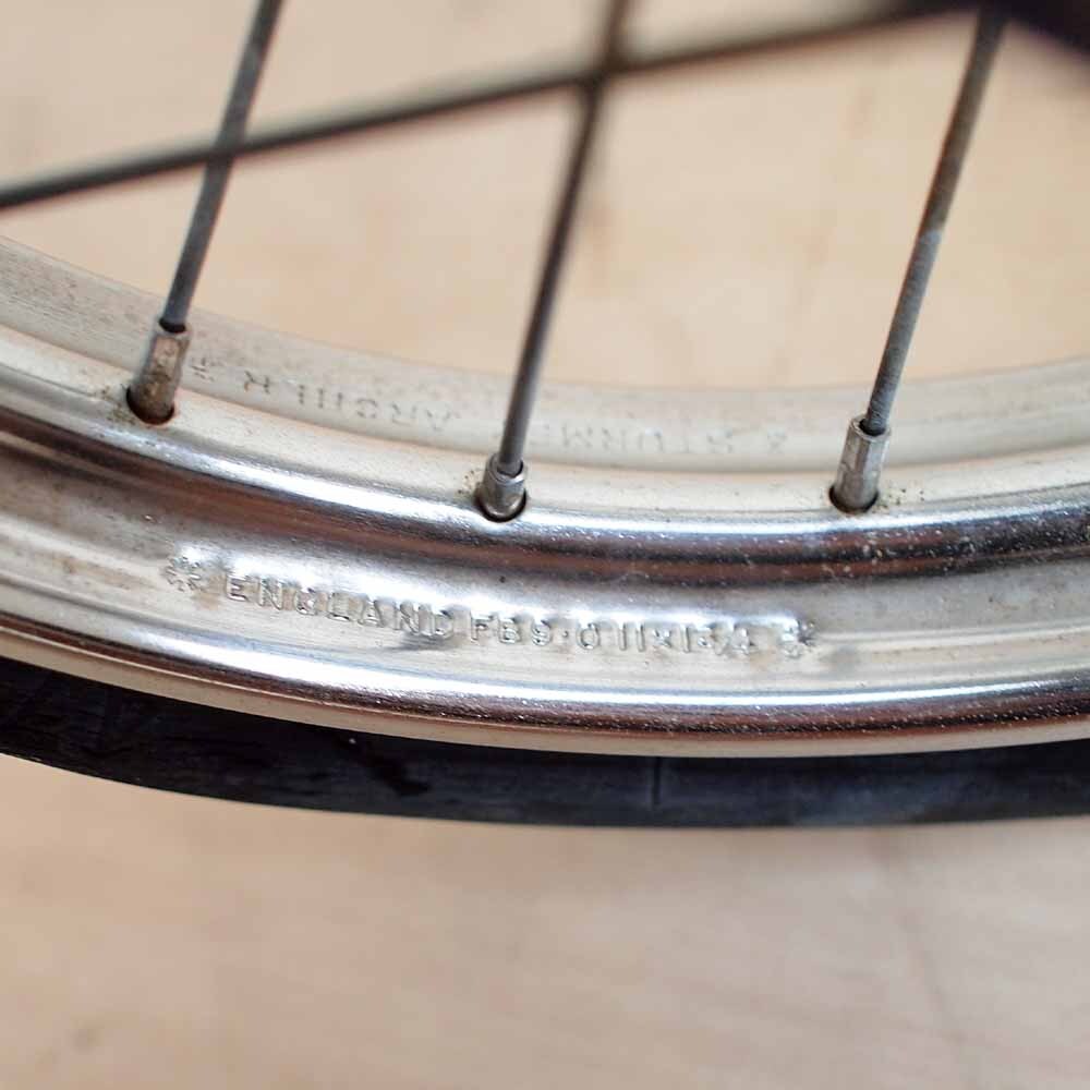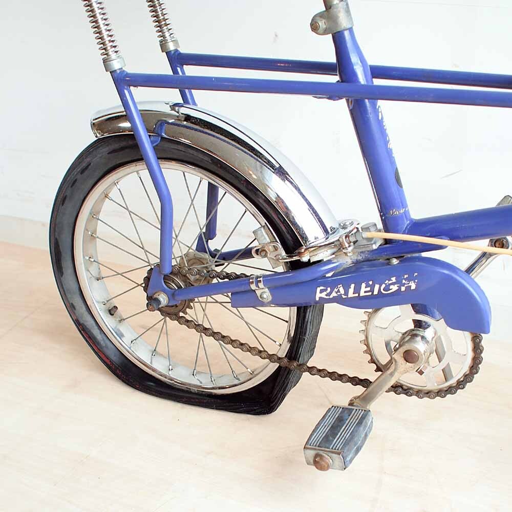 イギリスの自転車メーカー、Raleigh(ラレー)が製造・販売していた自転車「ラレー・チョッパー」です。 1970年代に登場し、個性的なデザインで一世を風靡したモデルです。 特徴的なハイバックシートと、前輪が小さく後輪が大きいスタッガードホイールが目を引きます。 この独特なフォルムは、当時アメリカで流行していたカスタムバイク「チョッパー」にインスパイアされたものです。 現在では生産が終了していますが、そのユニークなデザインと当時の雰囲気を色濃く残すスタイルから、 ヴィンテージ自転車として今なお高い人気を誇ります。 コレクションやインテリアディスプレイとしても映える、ラレーを代表する名作モデルです。 この機会にぜひご検討ください。 ■商品仕様■ 本体サイズ(約):幅470mm×全長1100mm×高さ850mm ■コンディション■ 長い年月を経たビンテージ品のため、全体的に使用感や経年劣化が目立ち、部位によっては若干のぐらつき・劣化もございます。 タイヤは前後潰れています。手の届く範囲で磨いております状態にやや難があるため、ご理解のうえご検討ください。 ■発送詳細■ 発送は愛知県からアートセッティングデリバリー家財おまかせ便Cランクになります。 Cランク・・・愛知県より 北海道(函館エリア)・・・13690円 北海道(札幌/千歳エリア)・・・16090円 北海道(道北エリア)・・・16630円 北海道(道東エリア)・・・16630円 青森県・・・12370円 岩手県・・・10700円 宮城県・・・10270円 秋田県・・・11900円 山形県・・・10270円 福島県・・・9840円 茨城県・・・8870円 栃木県・・・8920円 群馬県・・・8540円 埼玉県・・・8490円 千葉県・・・8490円 東京都・・・8490円 神奈川県・・・8440円 新潟県・・・8920円 富山県・・・8060円 石川県・・・8010円 福井県・・・7740円 山梨県・・・8060円 長野県・・・8060円 岐阜県・・・7740円 静岡県・・・7740円 愛知県・・・7740円 三重県・・・7740円 滋賀県・・・7740円 京都府・・・7960円 大阪府・・・7960円 兵庫県・・・7960円 奈良県・・・7740円 和歌山県・・・8010円 鳥取県・・・8440円 島根県・・・8870円 岡山県・・・8440円 広島県・・・9360円 山口県・・・9790円 徳島県・・・8500円 香川県・・・8930円 愛媛県・・・9470円 高知県・・・9470円 福岡県・・・10270円 佐賀県・・・10650円 長崎県・・・11850円 熊本県・・・10700円 大分県・・・10750円 宮崎県・・・12370円 鹿児島県・・・12280円 沖縄県・・・19900円 家財おまかせ便では、ドライバー様が梱包から開梱、設置までのご対応となります。 愛知県春日井市の店舗にて直接引取りも可能ですのでその場合はご連絡下さい。 積み込みはお手伝いさせていただきます。 梱包資材等は落札者様でご用意ください。 また、こちらの商品は店舗でも同時に販売しておりますので、 店頭での販売が先に行われた場合は、終了前に出品を取り消しさせていただきます。 ■発送の流れ■ アートセッティングデリバリー家財おまかせ便は、お届け日は地域にもよりますが4~7日ほどお時間を頂きます。 愛知県春日井市白山町4-7-5 リサイクルショップ ゼロまで取りに来て頂ける場合はご連絡ください。 水曜日は定休日の為、発送業務が行えません。 ■注意事項■ ◆最初に◆ ご落札いただいた方は取引ナビよりご連絡をお願い致します。 落札後2日を過ぎましてご連絡がない場合は次点候補者の方を繰り上げさせて頂く場合が ございますのでご了承ください。 こちらの商品はリサイクルショップゼロにて店舗販売も同時に行っております。 店頭での販売が先に行われた場合は、終了前に出品を取り消しさせていただく 場合がございます。あらかじめご了承ください。 ◆商品に関して◆ 状態に関しましては、展示中についてしまう追加の小傷、 多少の見落としや表現出来ていない部分もございます。 色味に関しましては個々のモニターや、撮影環境、素材や生地により 画像と実物の色目が多少異なる場合がございますので予めご了承ください。 匂いに関しましても、主観を含む表現となるため、ノークレームとさせていただいております。 採寸は手作業で行っております。多少の誤差などはご了承ください。 商品の材質はメーカー品質表示など、確証が無い限りは記載しない場合がございます。 また、当方の推測で記載する場合がございますが、保証するものではございませんので予めご了承くださいませ。 ご質問いただけましたらわかる範囲で回答させていただきます。 中古品及び展示品に関してチェックは入念に行っておりますが万が一詳細な部分に 見落とし等がある場合はご了承ください。又気になる程度には個人差がございます。 完璧なお品をお求めになられている方、神経質な方に関しましては 大変申し訳ありませんが、ご入札をお控えいただけますようお願い致します。 商品は、タイトルにあります本体のみの出品です。 撮影に使用した小物、その他写り込んでいるものは特筆無い限りは付属しません。 タイトルにございます