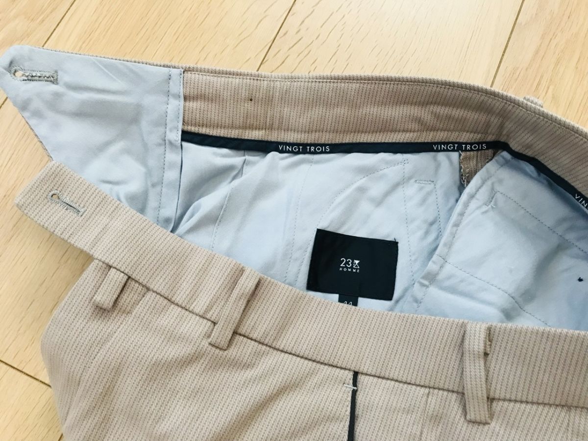 | サイズ | 表記44(実寸/ウエスト:73cm もも幅:28.5cm 裾幅:19cm 股上:23cm 股下:75cm)| 色 | ベージュ | 素材 | 綿62 ポリエステル36 ポリウレタン2% 裏地:ポリエステル100% | コンディション | 8 | |