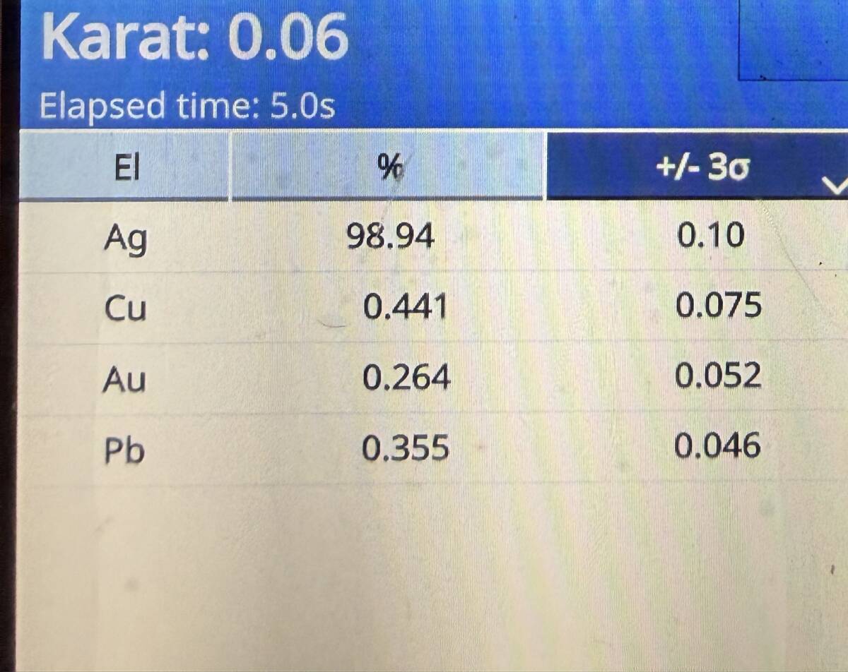 | 商品説明 | 【商品内容】 希少【本座 天保一分銀 Rq 】 表R型は、あまり見かけず、少しレアだと思います。 【品位】 銀98.94% 金0.264% OLYMPUS VANTA 蛍光X線分析計機 (約400万円)で測定。 鑑定結果は写真に掲載しています。 【量目】:8.64g 【状態】: 銀座オークションにて落札した一分銀です。 【本座 天保一分銀 Rq 】となります。 コンディションは写真でご判断ください。 現状で気に入っていただける方のみお願い致します。 計量器は安価な物ですので多少の誤差はあると思います。 発送は【おてがる配送ゆうパケットポスト】を選んでいただき コインホルダーに入れ、プチプチに包み さらにプチプチ付き封筒に入れて発送いたします。 ◆あくまで個人保管品です。 画像にてご判断いただき、ご納得いただける方のみご入札をお願い致します。 また画像には限りがございますので、色味が異なる場合などあるかもしれません。 詳細部分にこだわる方、完璧をお求めになる方、状態に神経質な方もご遠慮願います。 商品状態に関しては個人差がございます。 落札後の商品状態による返品や故障時の補償は一切お断りいたします。 (すり替え防止の為) ◆不要なトラブルを避けるため、3日以内のご決済、 速やかな受け取り連絡をお守り頂ける方のみとしております。 あらかじめご了承ください。 お守り頂けなかった場合、落札者都合キャンセルとさせていただきます。 以上、全てをご了解いただける方のみご入札をお願い致します。 ■新規の方及び、評価が低い方の入札は取り消させていただく場合がございます。 ■領収証の発行は対応しておりません。 |