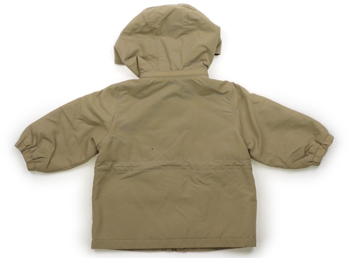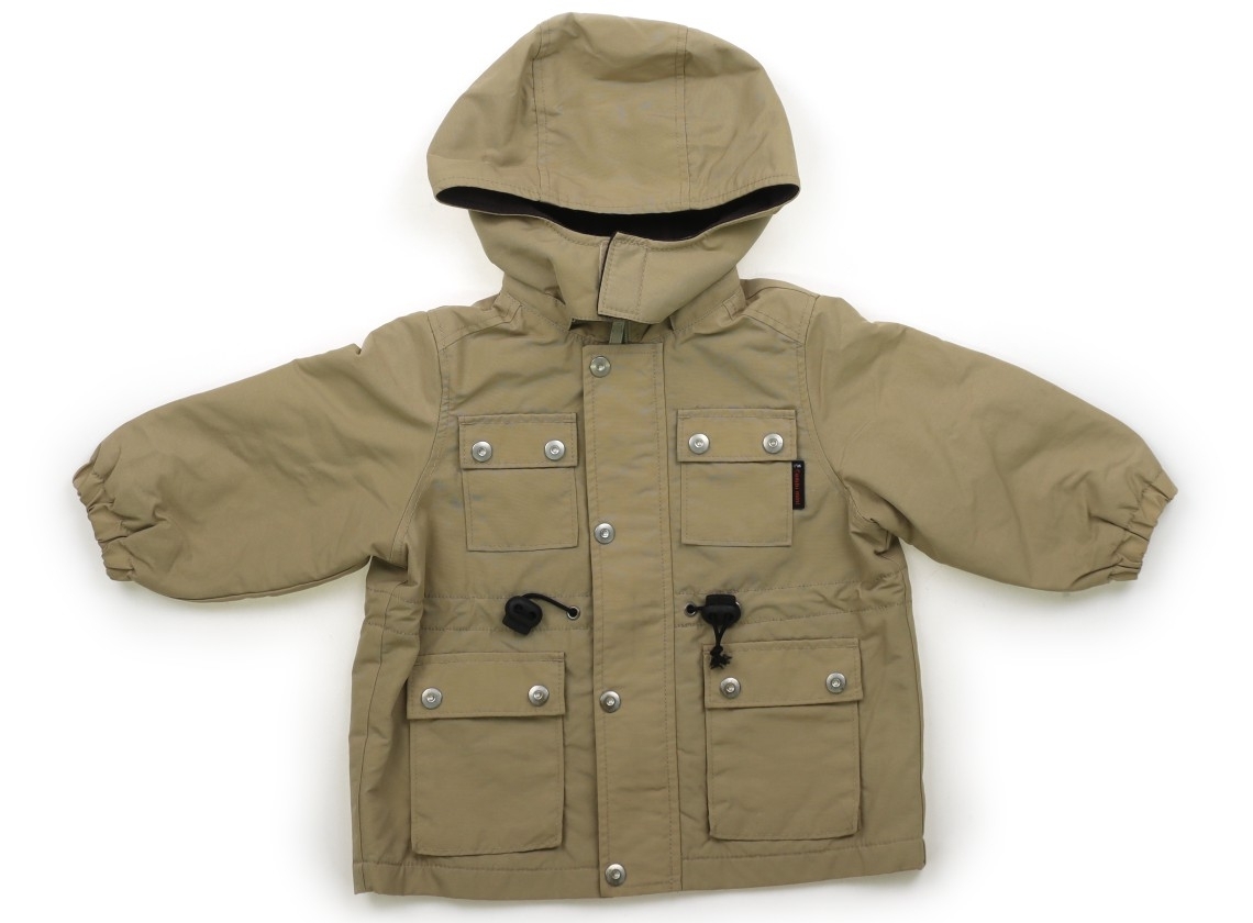 ナイロン素材。フリース素材の裏地付き。フードの取り外しが可能です。ファスナー・スナップボタン開き。袖口が汚れています。裏地に毛玉感があります。使用感が見られます。