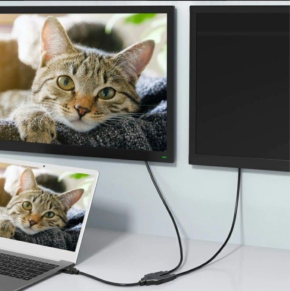 ビデオ機器やPCなどのHDMI出力端子から、2台のモニターやディスプレイに同時出力可能な分岐ケーブルです。