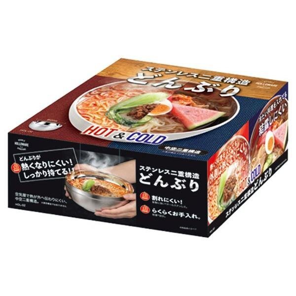 | 外側が結露しにくい&熱くなりにくい! 空気層で熱が外へ伝わりにくい中空二重構造。 割れにくく清潔な、ステンレス製どんぶり。 |