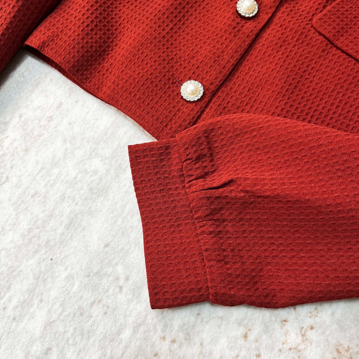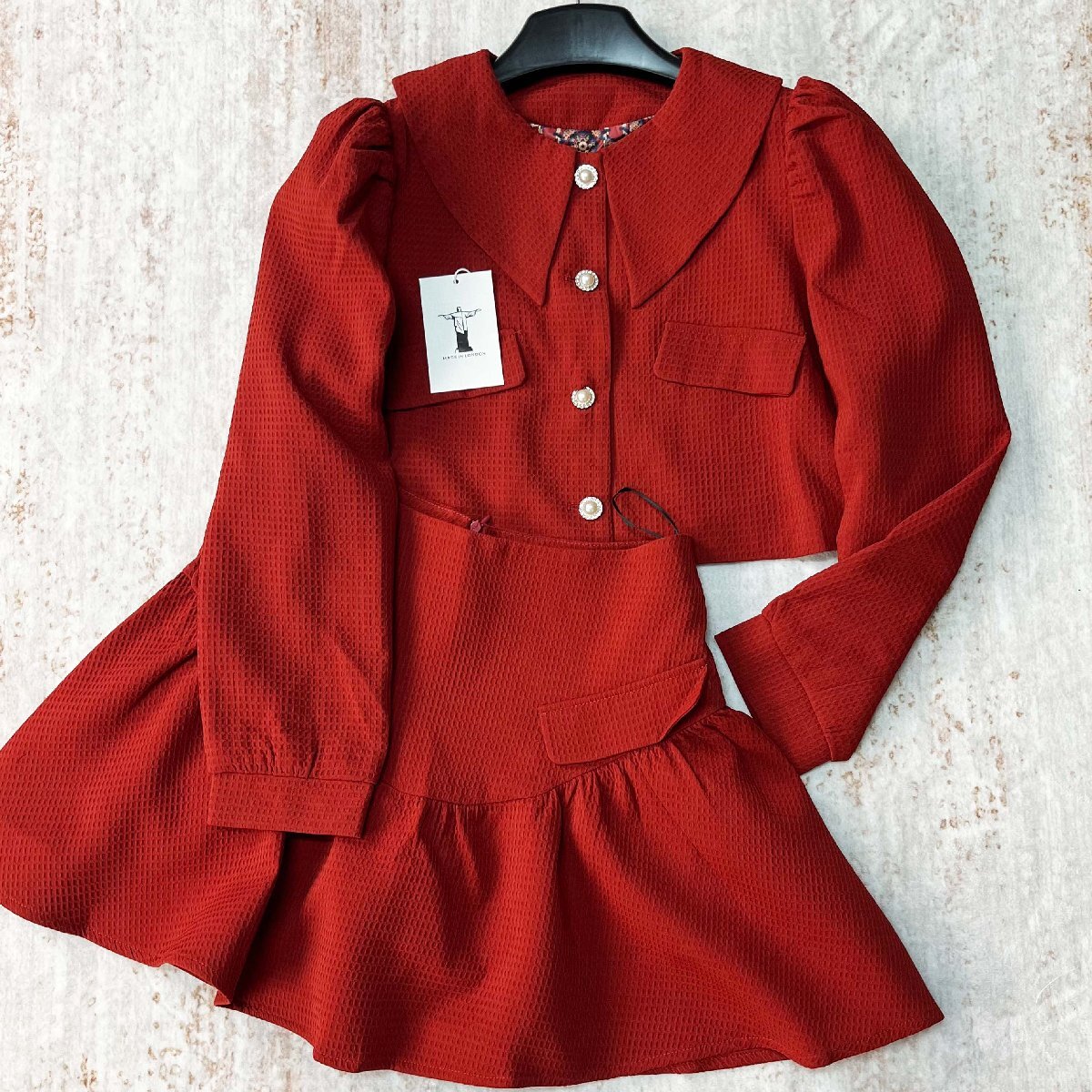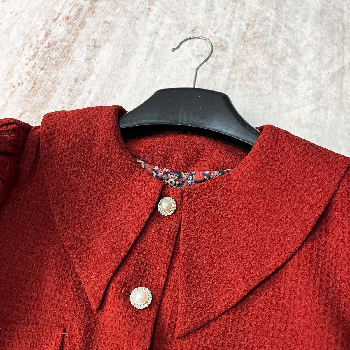 シンプルでスタイリッシュなセットアップで、女性らしい大人上品な魅力を演出しています。トップスは存在感のあるビッグカラーのデザインで、内側には華やかなプリント裏地が施されており、細部までおしゃれ心を感じられます。前開きは上品なパールボタン仕様で、きちんと感とフェミニンさを兼ね備えた一着です。ミニスカートなので脚長効果も期待できる。歩くたびにふわっと揺れるフレアスカートは女の子らしさたっぷり。