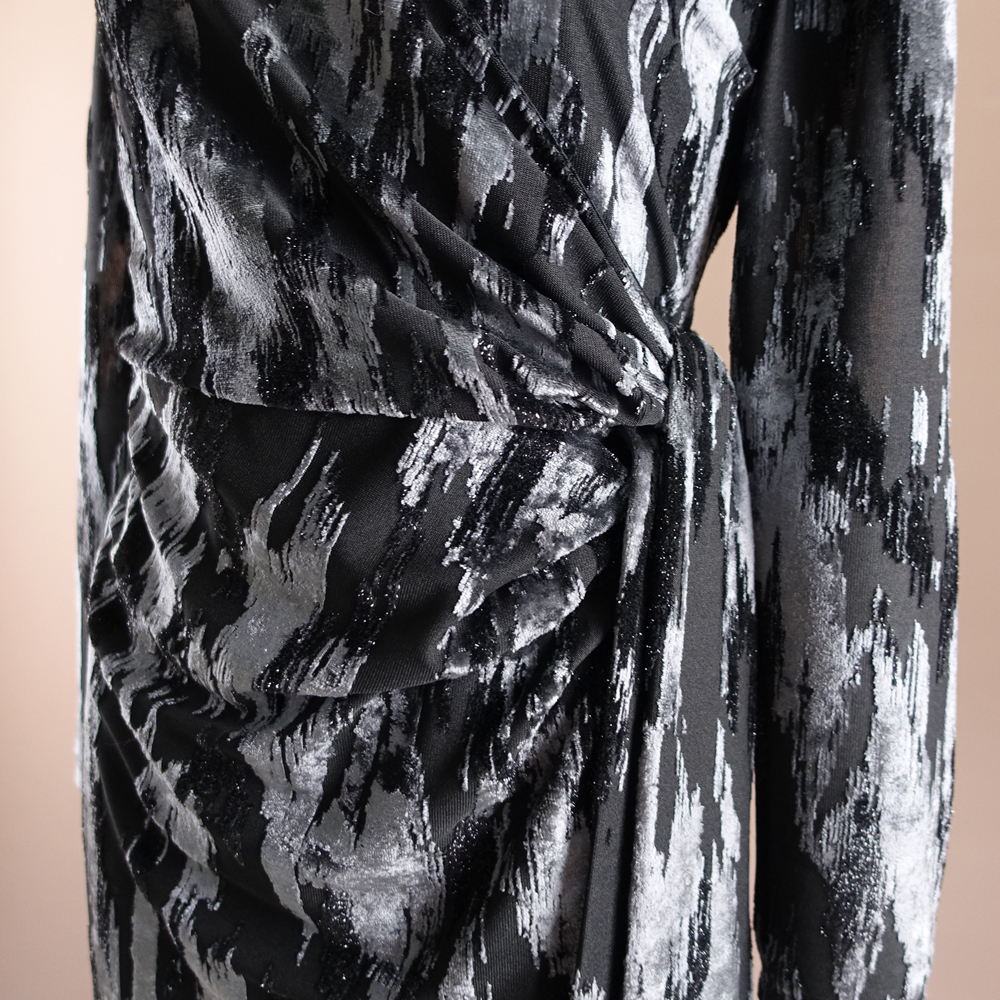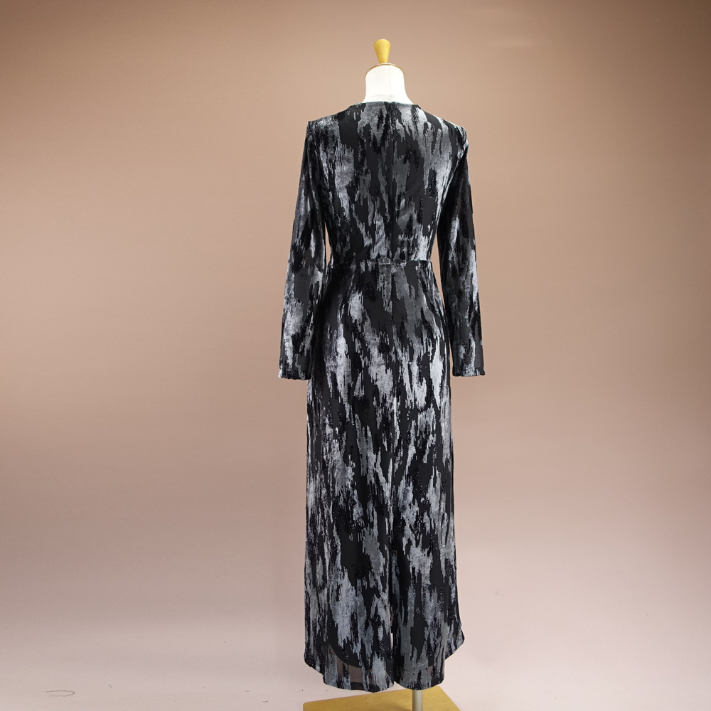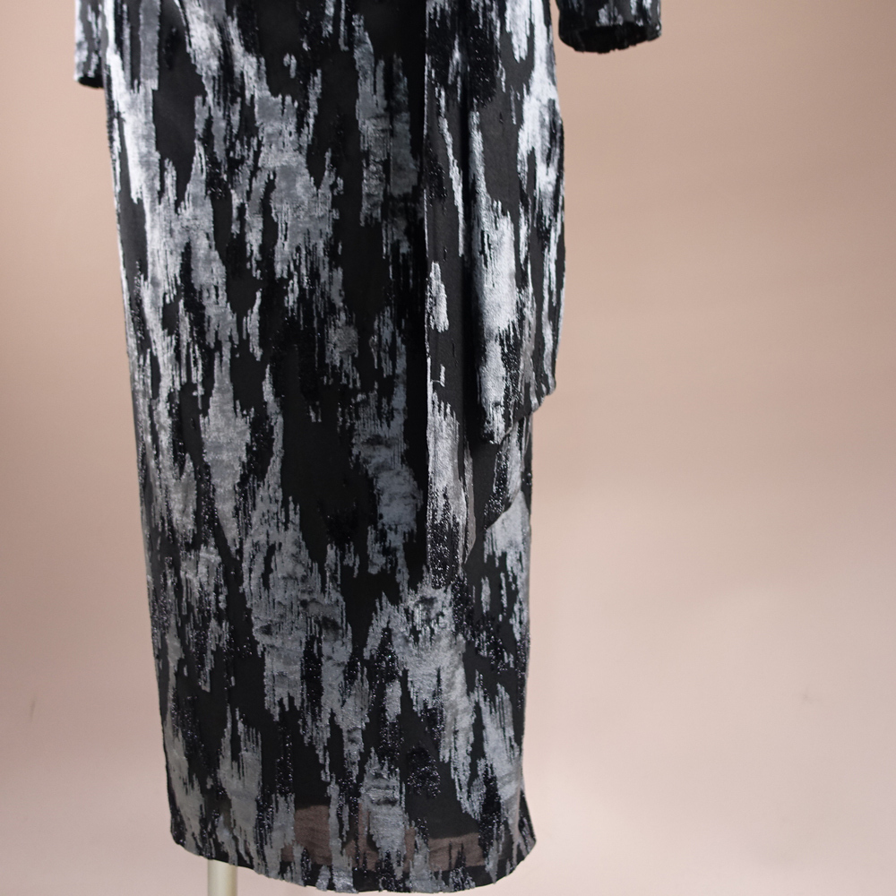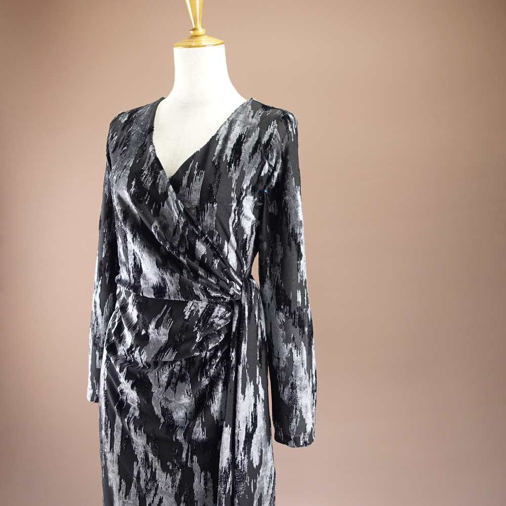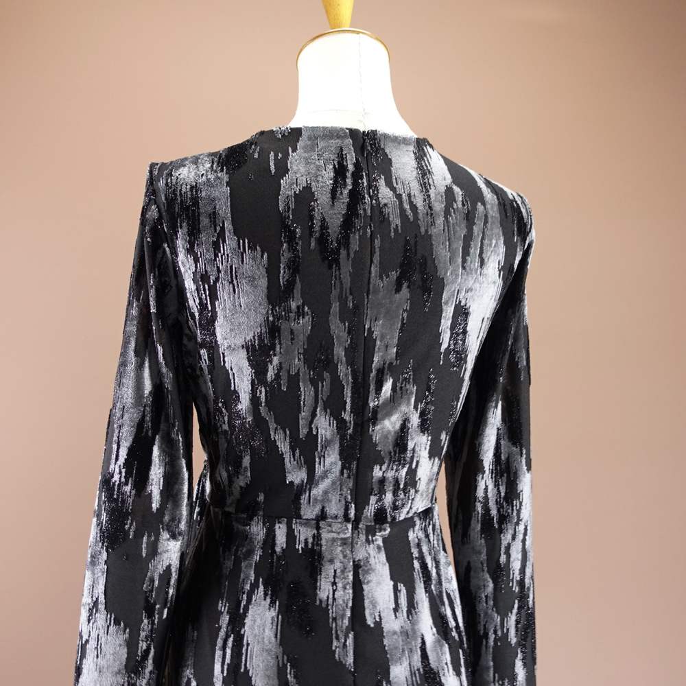 新品DENNIS BASSO 8P/13号 ラグジュアリーなロングドレス 黒 シルバー グレー 秋冬 長袖 Vネック ロング ワンピース パーティ 輝50E0502