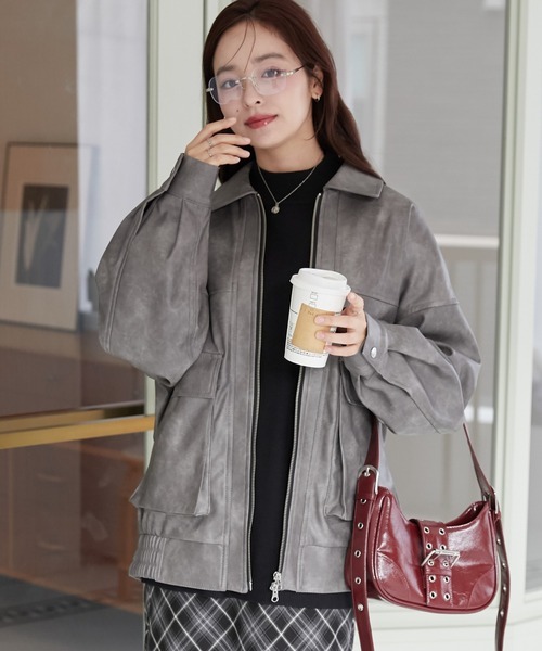参考商品名:WEGO/【24年秋冬新作・セットアップ対応】ヴィンテージライクフェイクレザーブルゾン