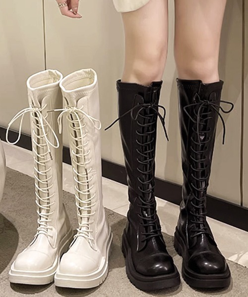 参考商品名:優秀スタイルアップ。レースアップロングブーツ 厚底