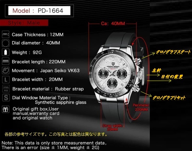 ■ムーブメント:VK63(SEIKO製クオーツムーブメント)/メカクオーツ(クロノグラフストップウオッチ機構あり)