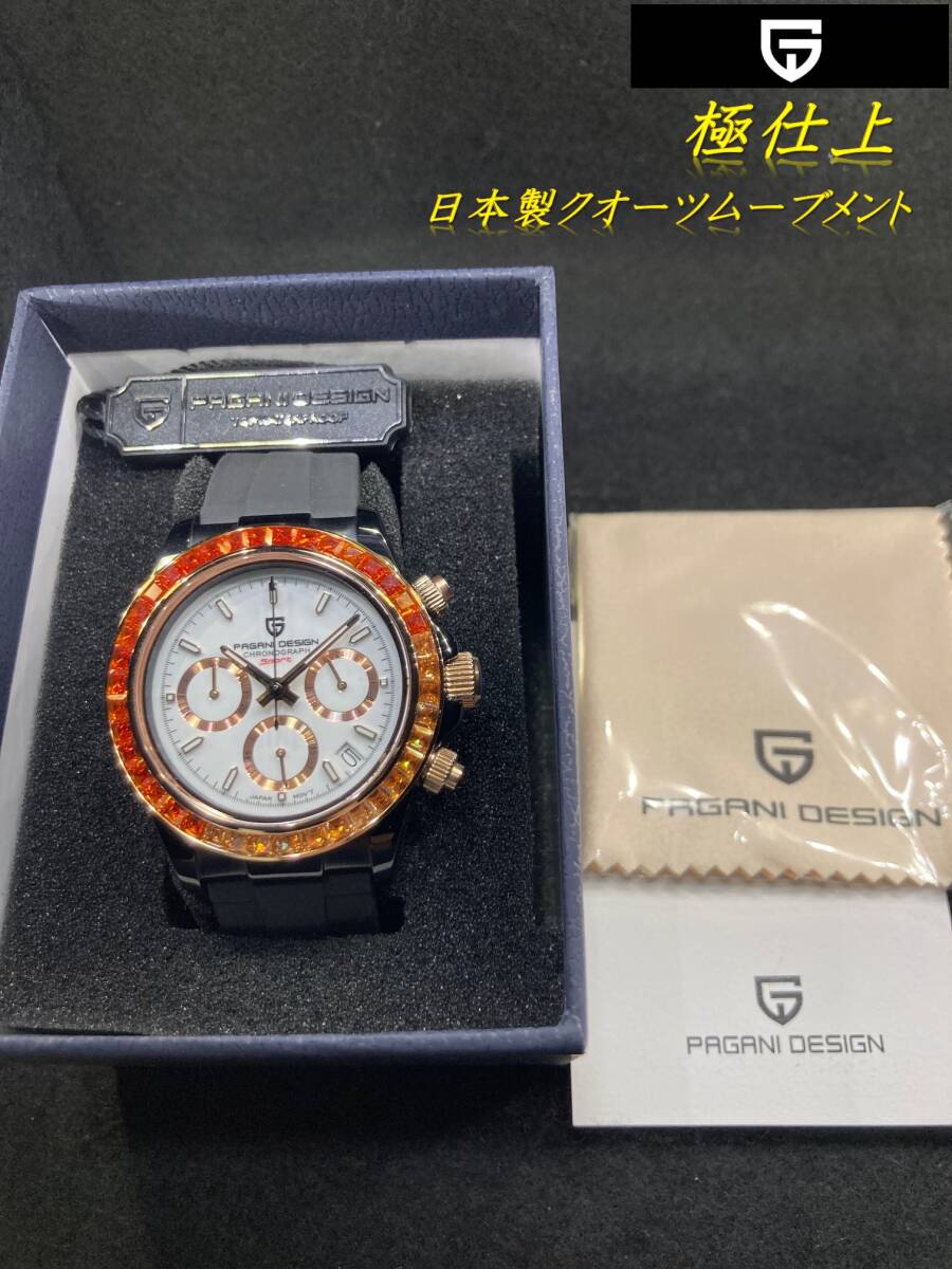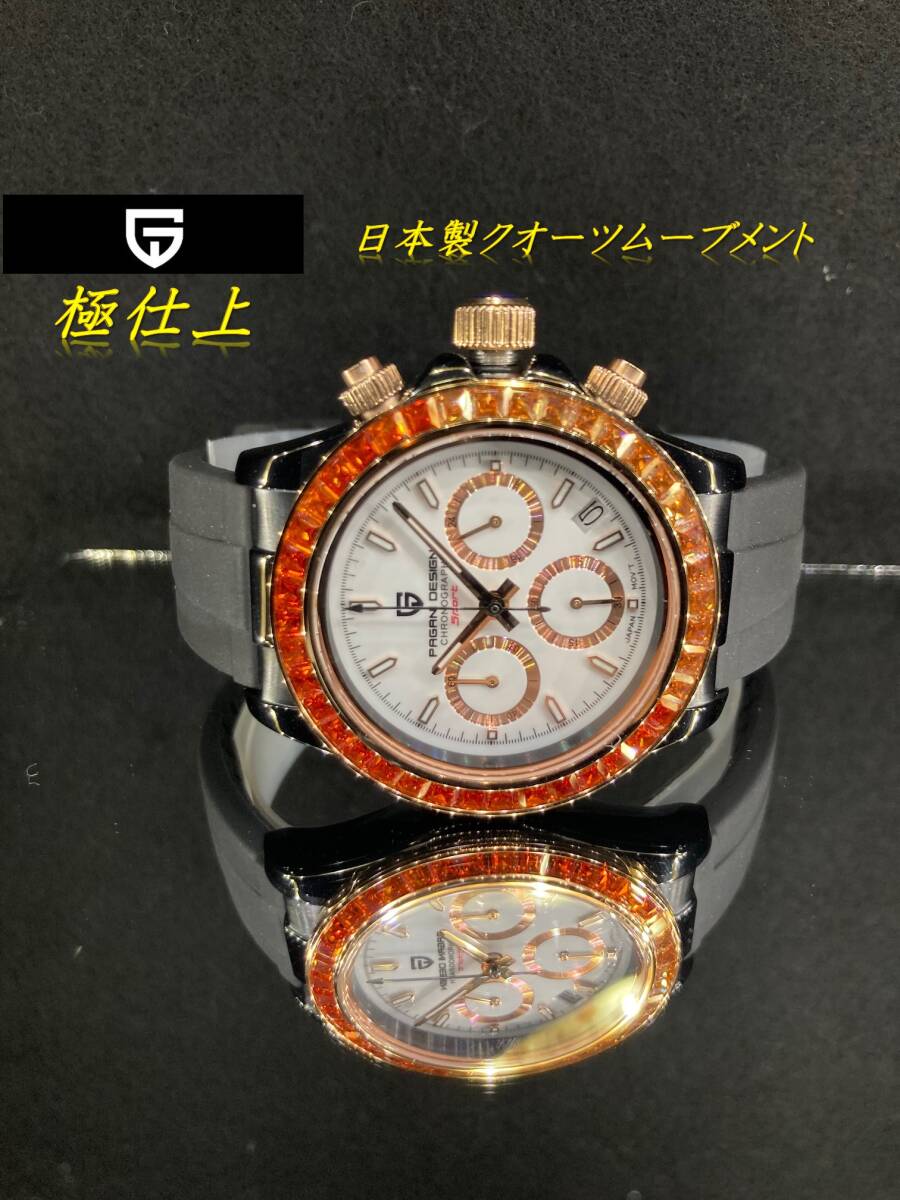 ■極仕上/調整済/10日保証付/新品に極めて近い数回だけ使用USED/中古品(デイトナオマージュ)日本製クオーツムーブメント/ラバーベルト