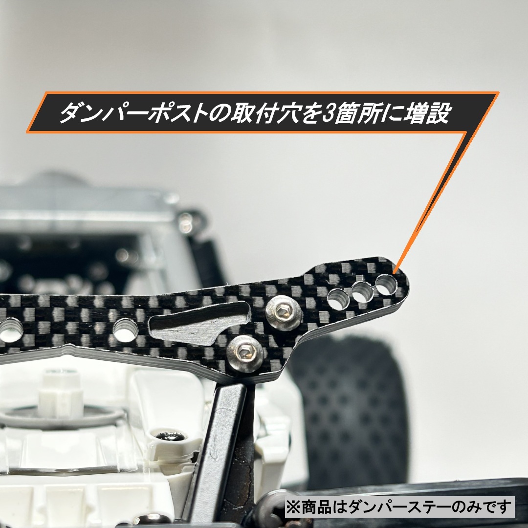・ダンパーポストの取り付け穴を3つに増設し、より細かいセッティングが可能になります。