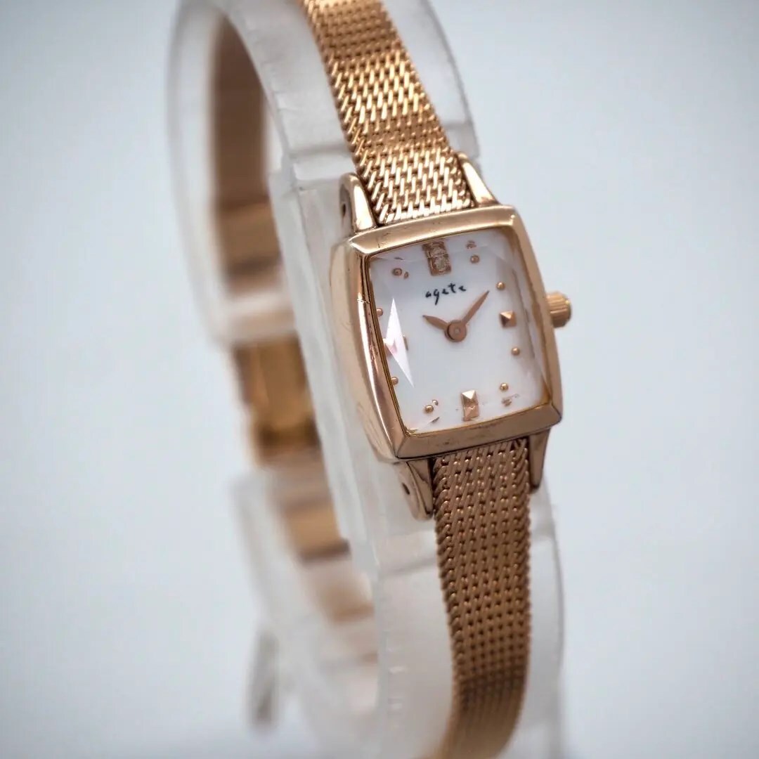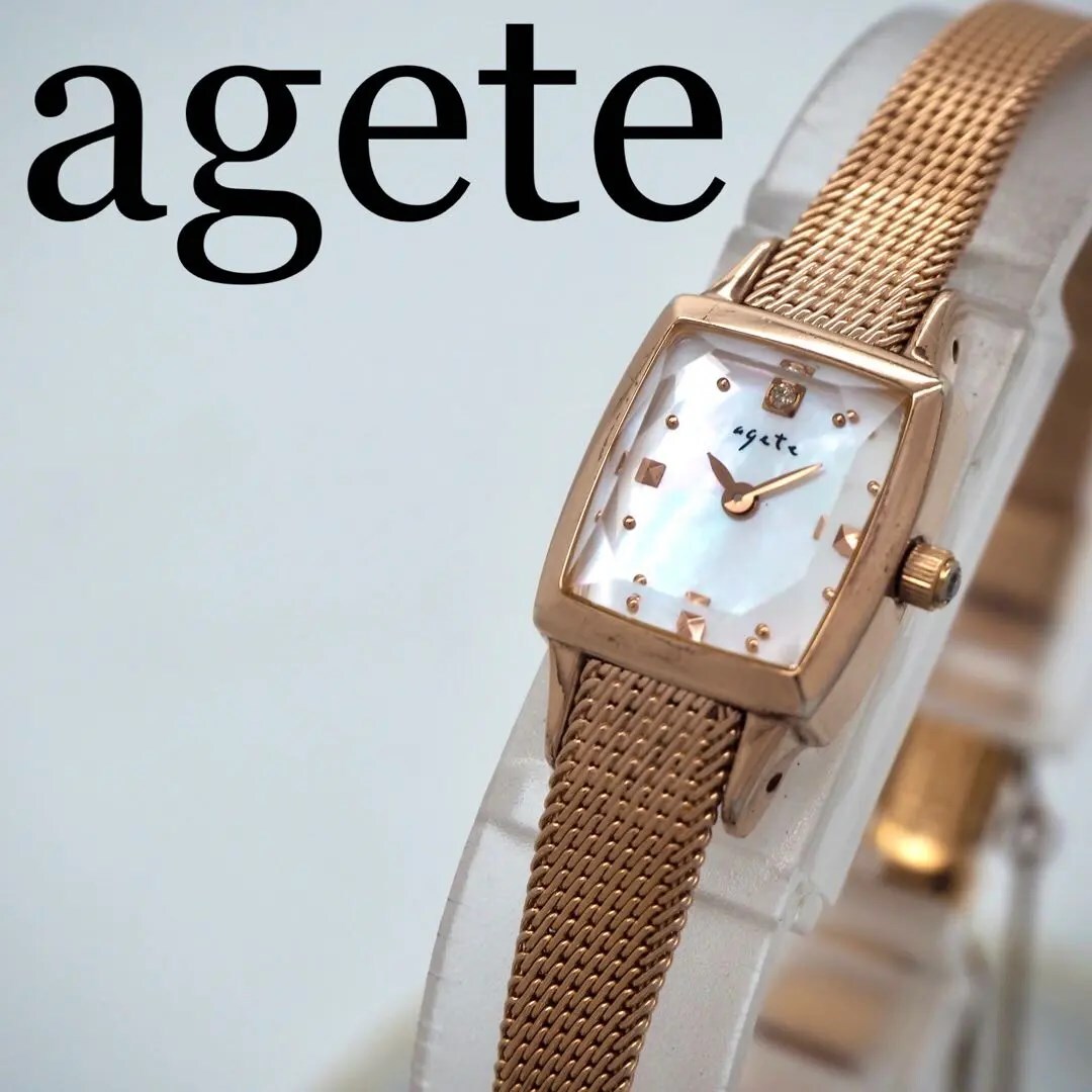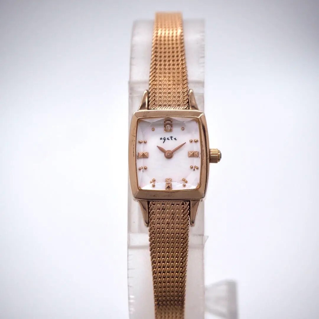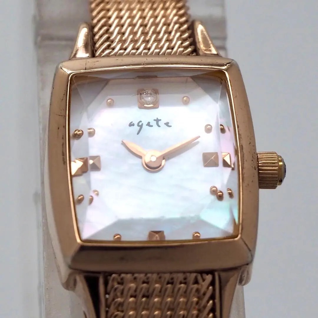 439 agete レディース 時計 カットガラス シェル 0.02ctダイヤ