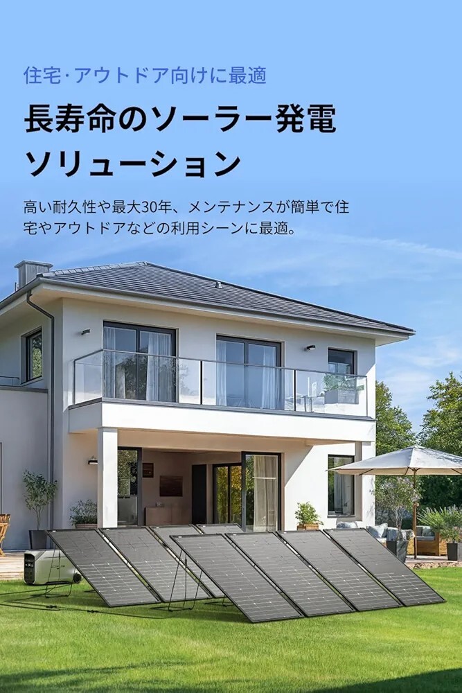 【住宅アウトドア向けに最適、長寿命のソーラー発電ソリューション】高い耐久性や最大30年の製品寿命を備え、メンテナンスが簡単で住宅やアウトドアなどの利用シーンに最適です。