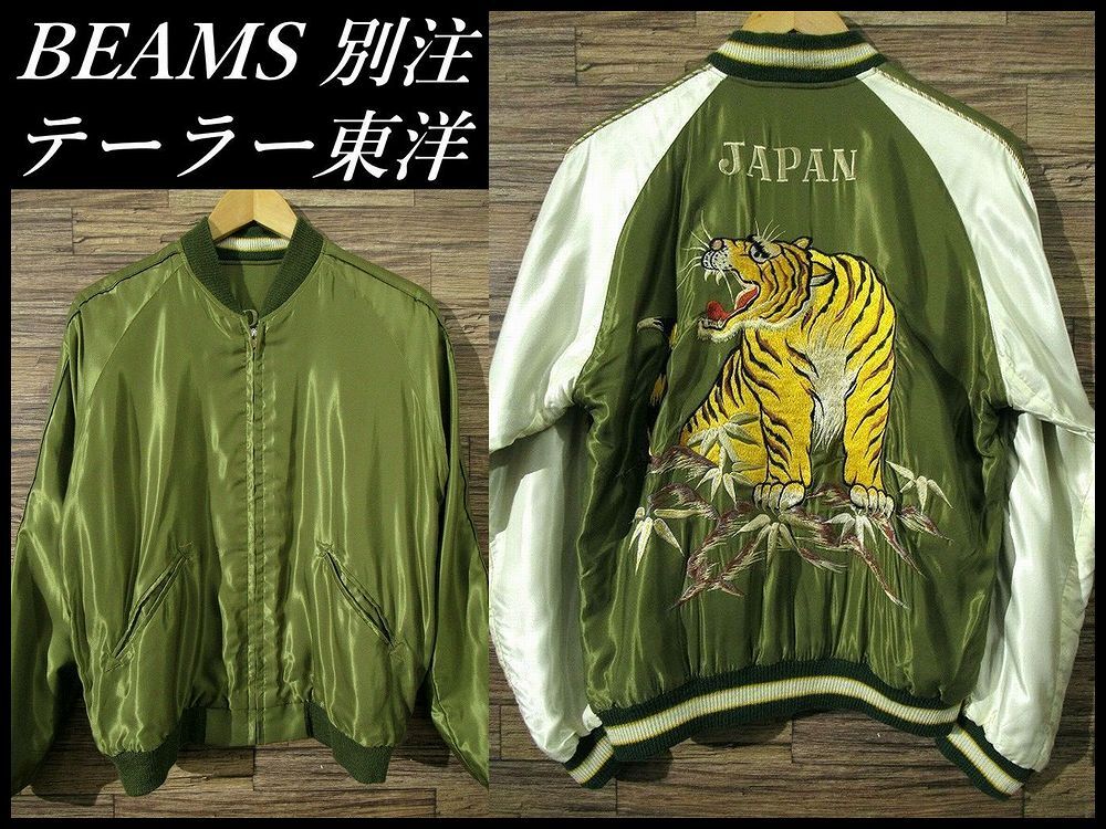 送無 希少 ビームス 別注 テーラー東洋 雷門 TT13578BM 笹虎 タイガー 刺繍 リバーシブル アセテート スカジャン スーベニア ジャケット M