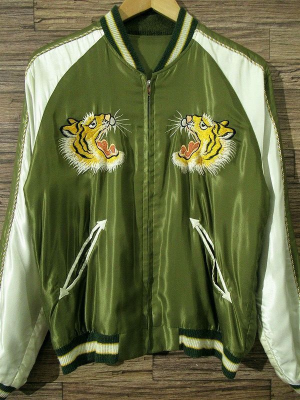 アセテート スカジャン スーベニア ジャケット カーキ M