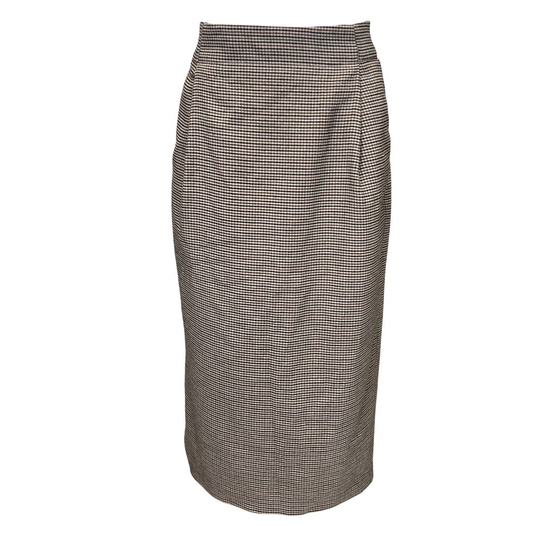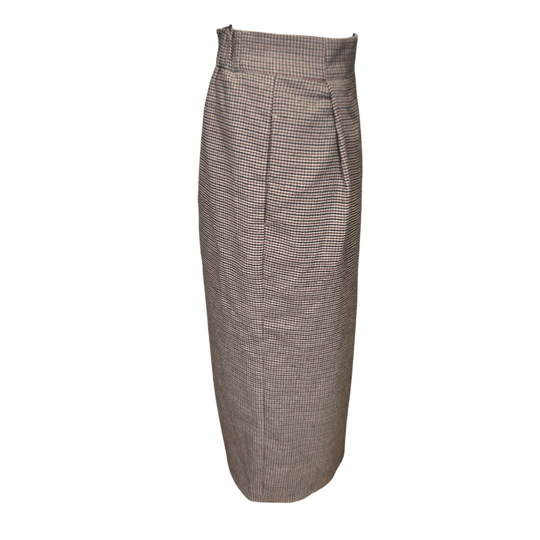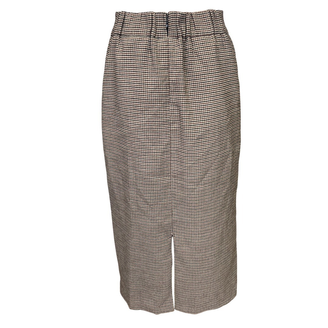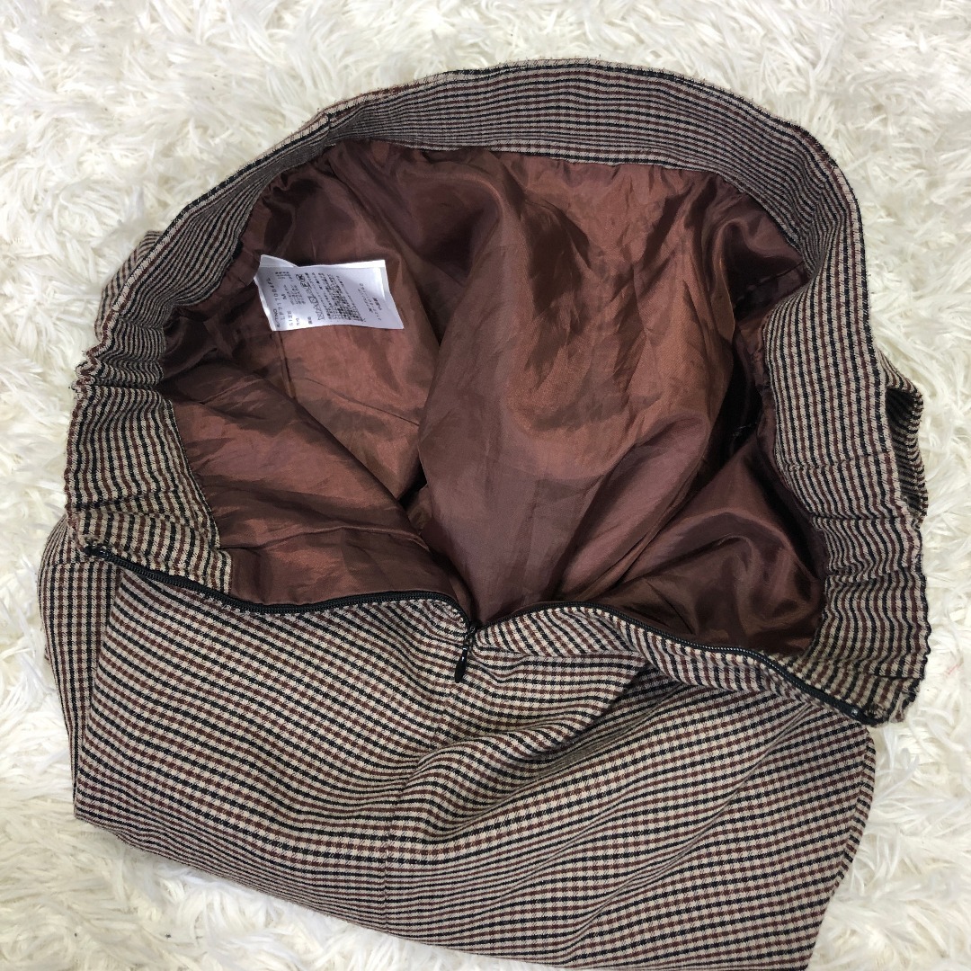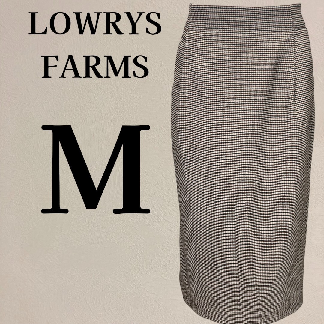 ローリーズファーム チェック柄 タック入り ロングタイトスカート M ブラウン系