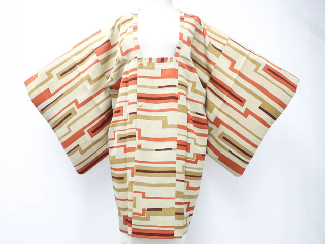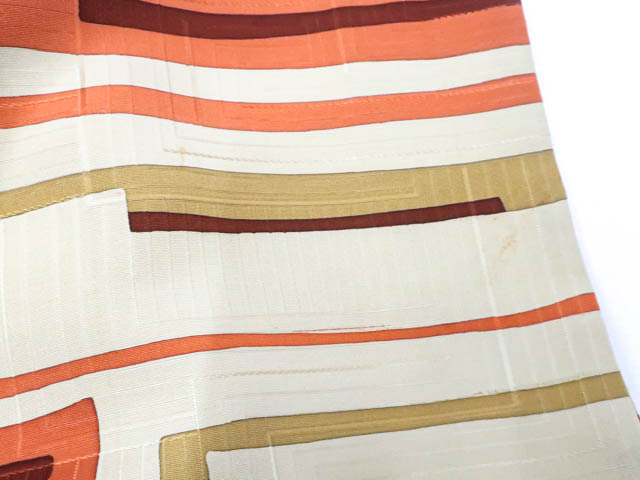 リサイクル商品のため、右袖後ろにシミ、羽裏に薄い汚れ、衿、身頃など所々にシミがございますが着用可能なお品です。 地色は、薄ベージュです。 1枚目の画像が近いお色かと思われます。 素材は正絹です。 |
