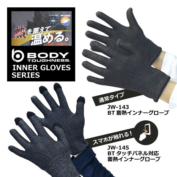 おたふく手袋 手袋 BODY TOUGHNESS 【 JW-145 】 BTタッチパネル対応 蓄熱インナーグローブ ■Mサイズ■  ブラック ※ネコポス発送