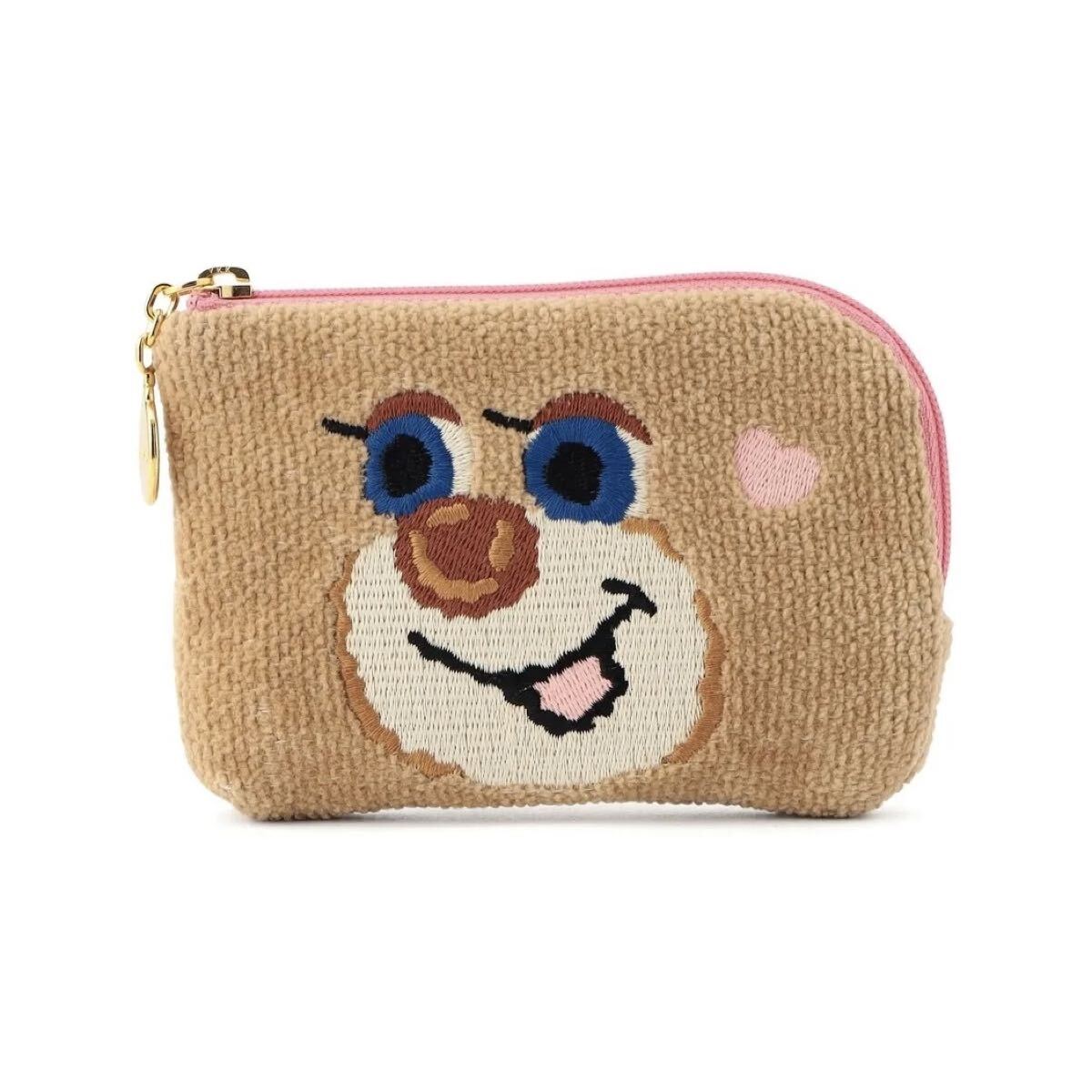 とびきりキュートな「ドアップテディガール」のミニポーチ。間口がL字に開くため、細々とした小物の出し入れもスムーズに行えます。小さめのバッグにも収まりやすいサイズ感で、毎日活用したくなるおすすめのポーチです。