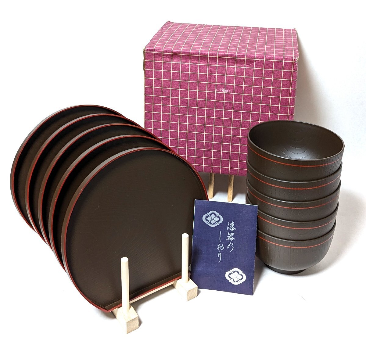 | ★未使用★ 半月お好み多用碗揃 お椀 半月盆 お盆 7.5寸 5客セット 和食器 汁椀 ぜんざい おしるこ 木製食器 漆器 料亭 旅館 カフェ |
