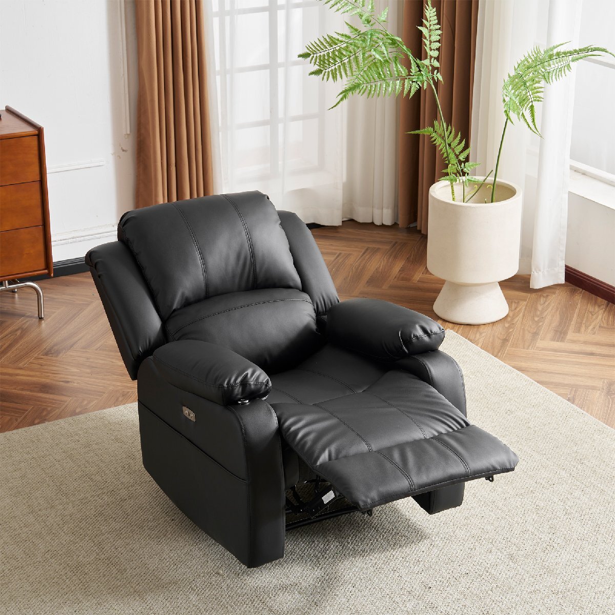 迅速配送・リクライニングチェア テーブル付き リクライニングソファ 1人掛け 電動 リクライニング ファブリック オットマン一体型