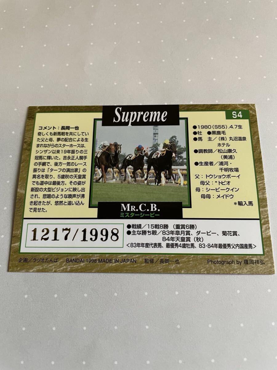 バンダイ サラブレッドカード 1998年上半期 Supreme S4 ミスターシービー 1998枚限定のシリアルナンバー入りカードです。