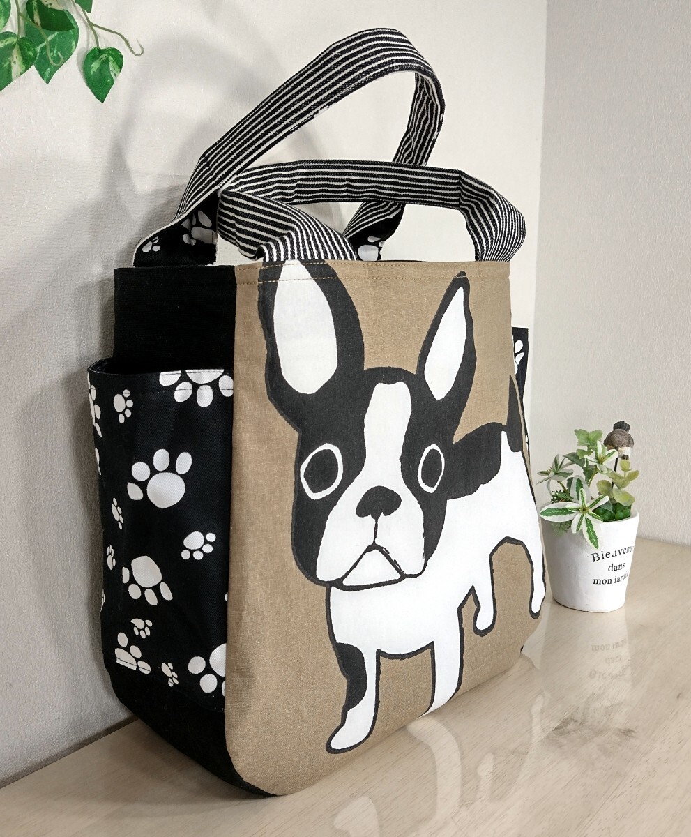 | ■商品説明■ フレンチブルドッグのトートバッグ 表布・持ち手に接着芯を使用しマチ付きのトートバッグを作りました 内側にポケット4個・Dかん・ナスカン、両サイド・裏側にもポケットを付けました ポケットが多いので便利です 画像⑨...ペットボトルの高さは約22㎝です ------------------------------------------------------------- 【重要】必ずご確認ください 発送時に小さく折りたたんだうえで圧縮して梱包する為、畳みジワが出来ますので 気にされる方はお取引をご遠慮ください ※畳じわはスチームアイロンを利用して伸ばせます(最後の画像を参照ください) ------------------------------------------------------------- 素材:表布 綿(フレンチブルドッグ柄・あしあと柄・黒白ヒッコリーデニム・マチは10番オックス) 内布 綿(帆布・白色黒ドット柄) 持ち手 綿(黒白ヒッコリーデニム) サイズ(㎝・平置き):高さ 31(持ち手含まず) 入れ口幅 39(マチ含む) マチ 12 持ち手 幅3×長さ45 重さ 377g (素人採寸につき誤差はご容赦ください) ※染むら等に気が付いた場合は、商品説明欄に記載しておりますが、もし見落としが御座いましたらご容赦ください ※布地は縫製前に数回水通ししております ※デニムも水通しをしておりますが薄い色へ色移りする事が有りますのでご注意ください ※お洗濯は、中性洗剤を希釈し手洗いしてください ※職業用ミシンを使用しております ※素人の趣味の範囲で一点一点丁寧に作成しておりますが、多少の歪みやズレ等があります ※既製品のような品質をお求めの方は入札をご遠慮ください ご理解頂ける方の入札をお願い致します ■■お支払いについて■■ お支払金額 落札代金+送料 お支払方法 「かんたん決済」(他の方法は不可) ※かんたん決済の期限内にお支払い手続きをして頂けない場合は「落札者都合によるキャンセル」 とさせて頂きますので悪しからずご了承ください ■■配送方法■■ 同梱発送不可 ●日本郵便 おてがる配送ゆうパケット 追跡○補償× ※発送時に小さく畳んで圧縮して梱包する為、畳みジワが出来ますので気にされる方は入札をご遠慮ください(スチームアイロンにてシワ伸ばしができます) ■■入札前にご確認ください■■ ●入札いただいた場合でも当方がお取引に不安を感じた場合は誠に申し訳ございませんが入札を削除させて頂く場合がございますのご容赦ください ●同梱不可につき単品お取引きでお願いします ●装飾品は含みません ●モニター環境により色等のイメージが異なる場合があります ●終了間際のご質問への回答が間に合わない場合は悪しからずご了承下さい ●早期終了する場合があります ●領収書の発行は行っておりません。申し訳ございませんがご自身でYahoo!かんたん決済の利用明細画面を印刷するなどしてご対応お願いします ●複数入札複数入札いただいたお取引で落札者都合によるキャンセルがあった場合に次点落札者の繰り上げは行いませんのでご承知置きください ●お取引終了後の評価についてご希望されない方もおられますので評価いただいた方のみ当方から評価を入れさせて頂きます ■■落札後について出品者からお願い■■ 「かんたん決済」の期限内に お支払手続きを完了して頂けない場合は「落札者都合によるキャンセル」とさせて頂きますので悪しからずご了承ください ※手続きが遅れる場合は早めにお知らせください 気持ちの良いお取引を願っておりますのでご協力よろしくお願い致します |