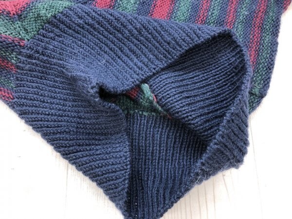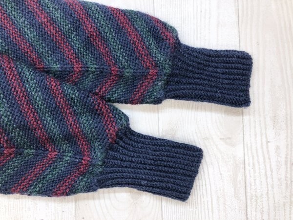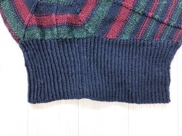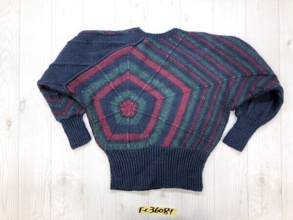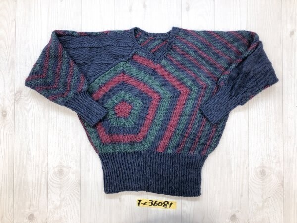レディース 五角形 ペンタゴン柄 Vネック リブ クロップドセーター 紺 です。