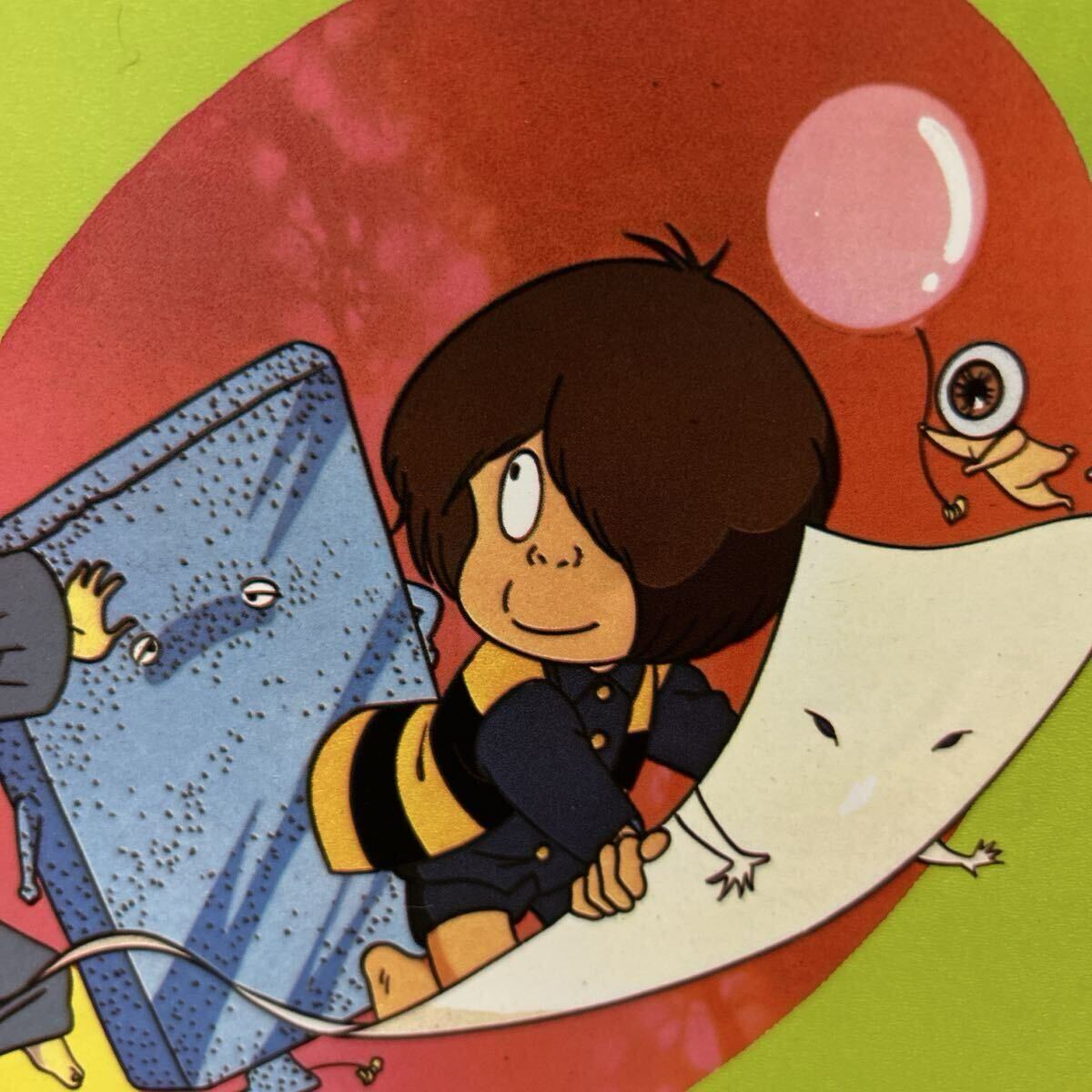 昭和当時のプロモーション用ノベルティで、アニメの人気キャラクターたちが描かれた貴重なデザインです。