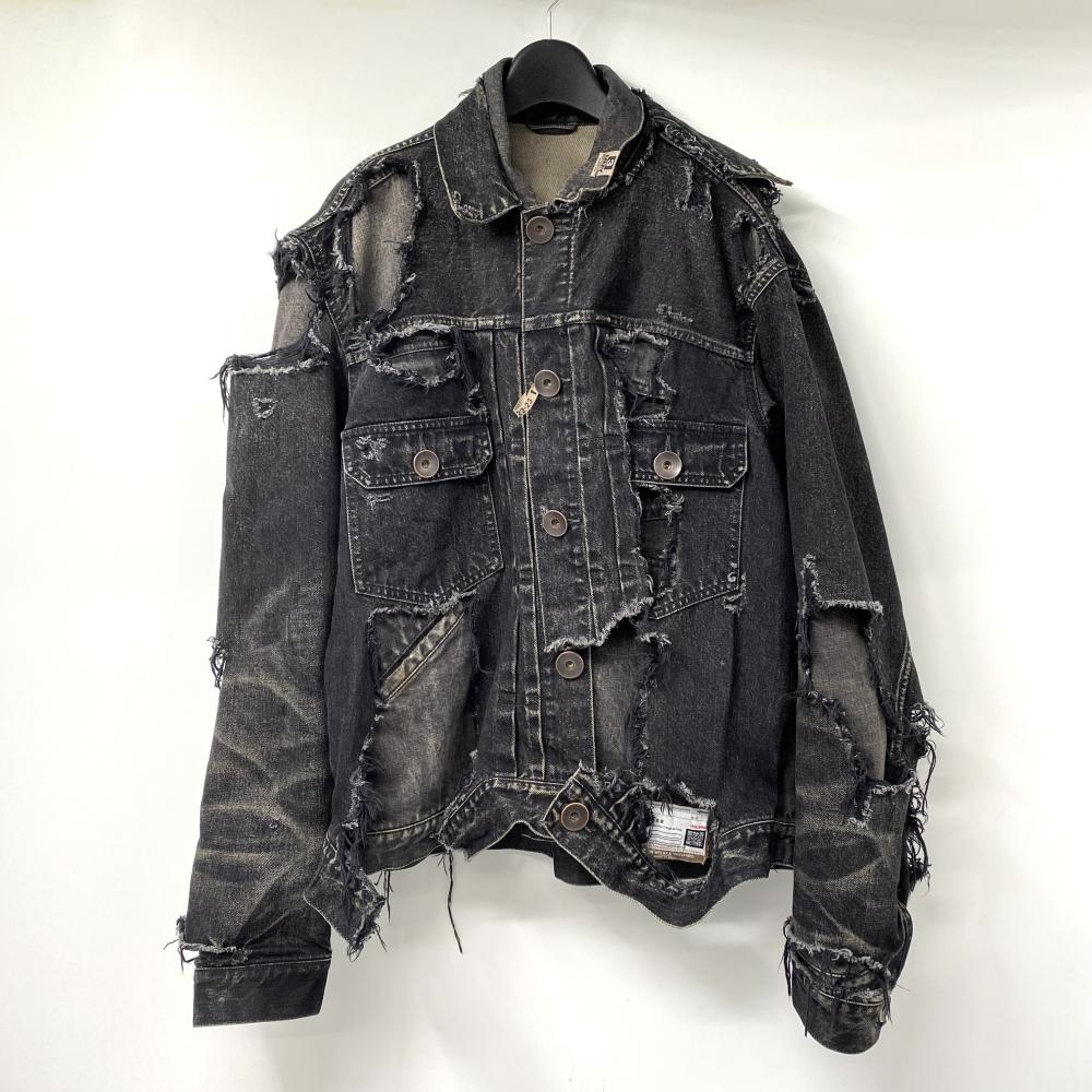 | 209999092051)MAISON MIHARAYASUHIRO 22AW Damaged Layears DENIM A09BL03-9 ブラック サイズ46 ジャケット メゾンミハラヤスヒロ |
