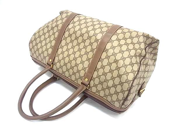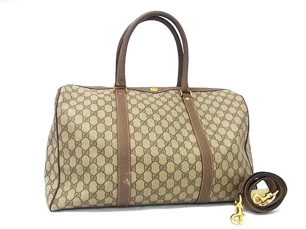 1円 GUCCI オールドグッチ 012・1732・6081・06 GGスプリーム PVC×レザー 2WAY ハンドバッグ ボストン ショルダー ブラウン系 FV3783