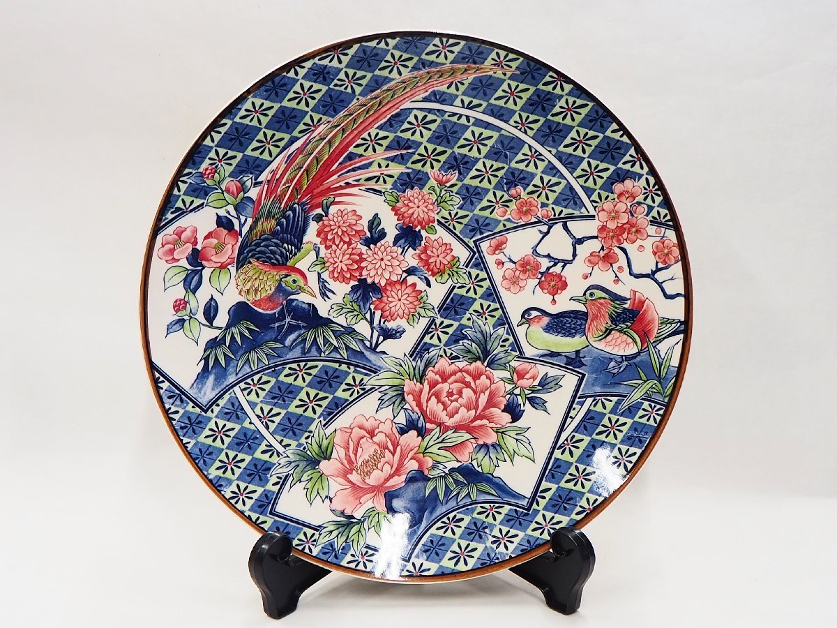 ★☆ 未使用 長期保管品【 萬古焼春日 大皿 花鳥図 直径31.5㎝ 】陶磁器 盛皿 刺身盛 鍋の具材盛 宴会皿 和食器 ☆★