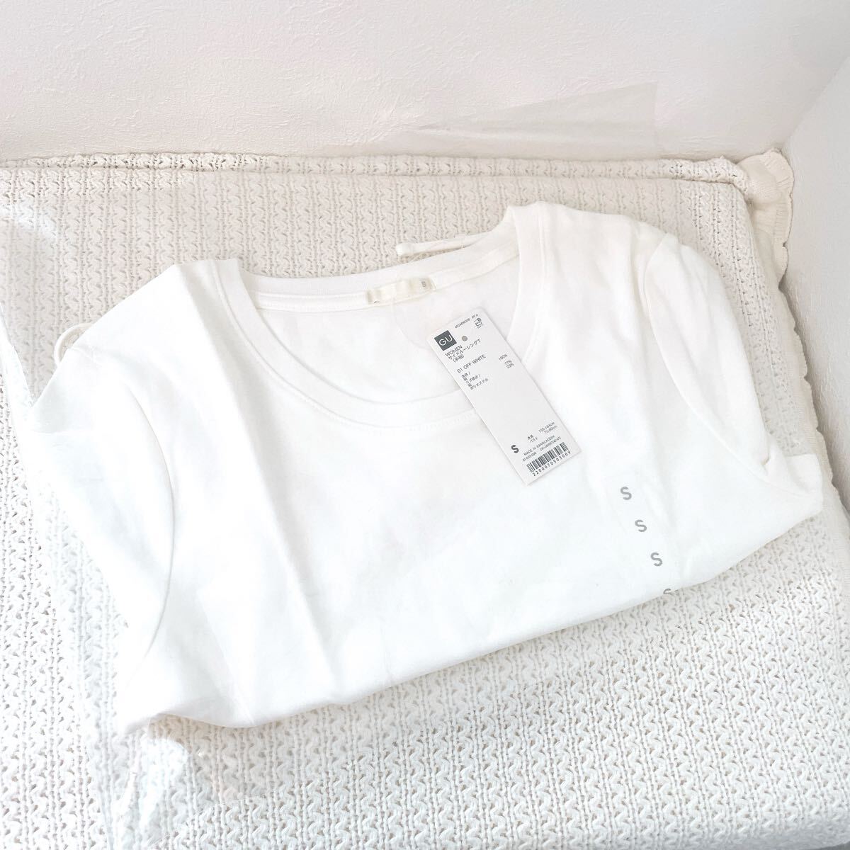 ★新品★ジーユーGUサイドルーシングTホワイト半袖カットソートップスTシャツ白チビTプルオーバー丸首クルーネックSサイズy2kラウンド
