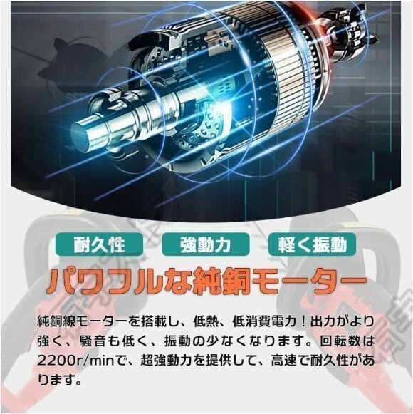 ◆ハイパワーモーター: 高トルクのモーターが搭載されており、太い木や密集した枝にも効果的に対応。パワフルな動力で迅速かつ効率的に作業が可能です。