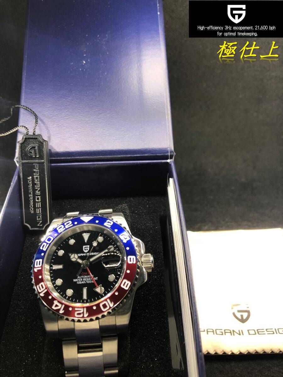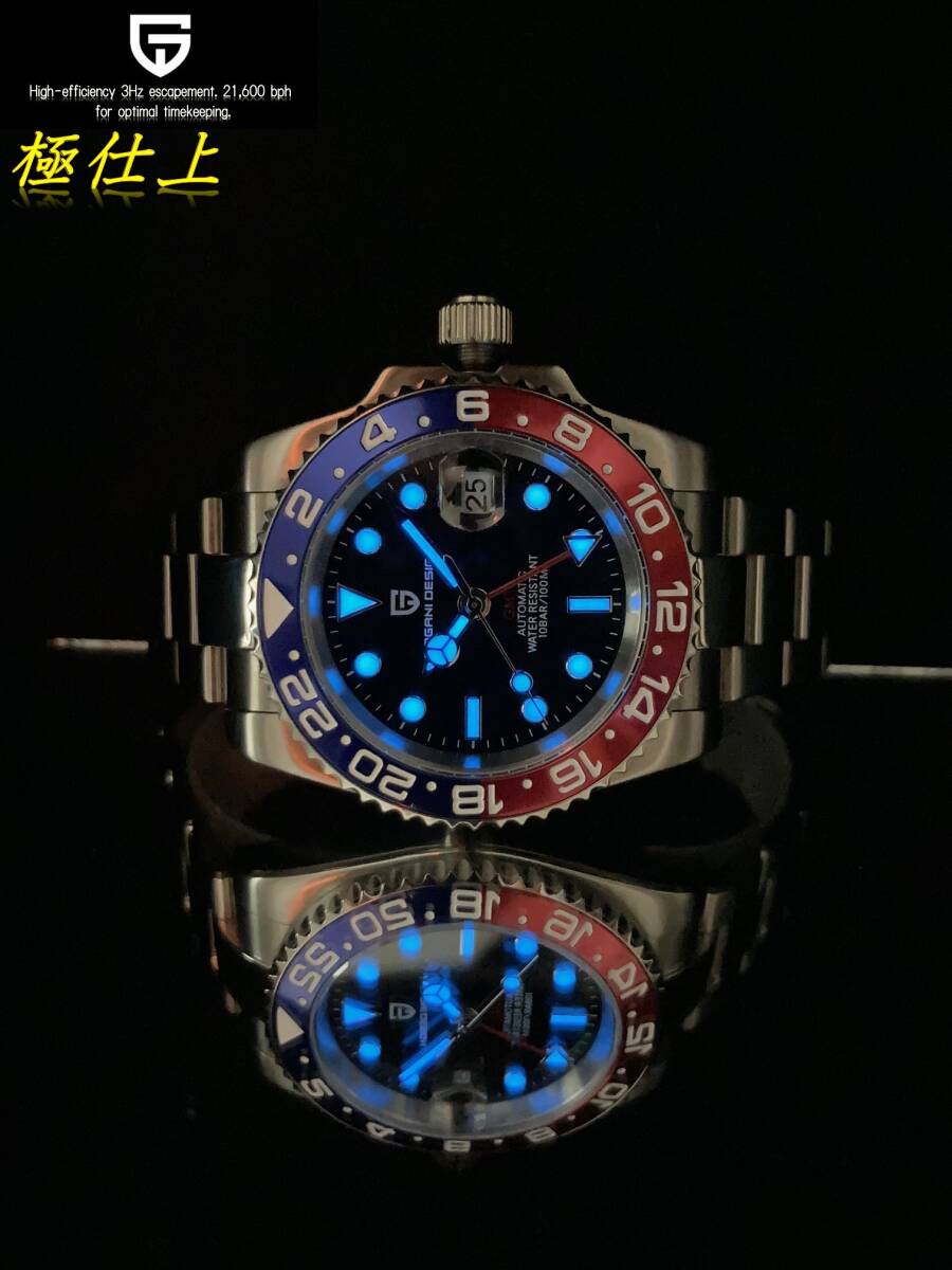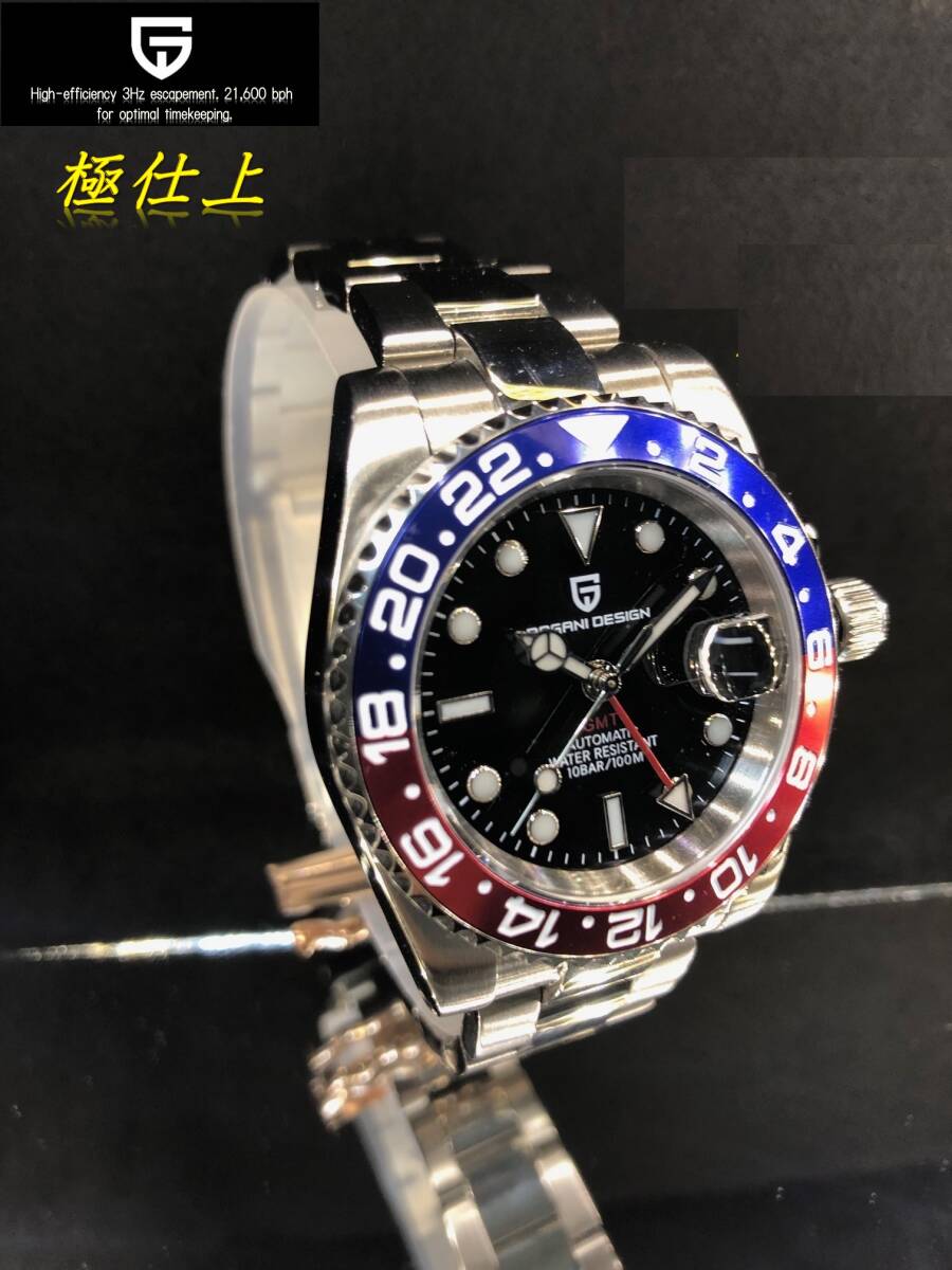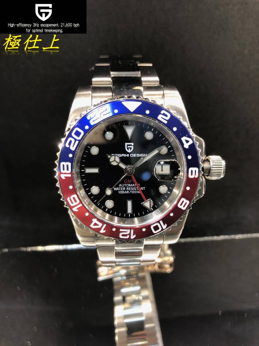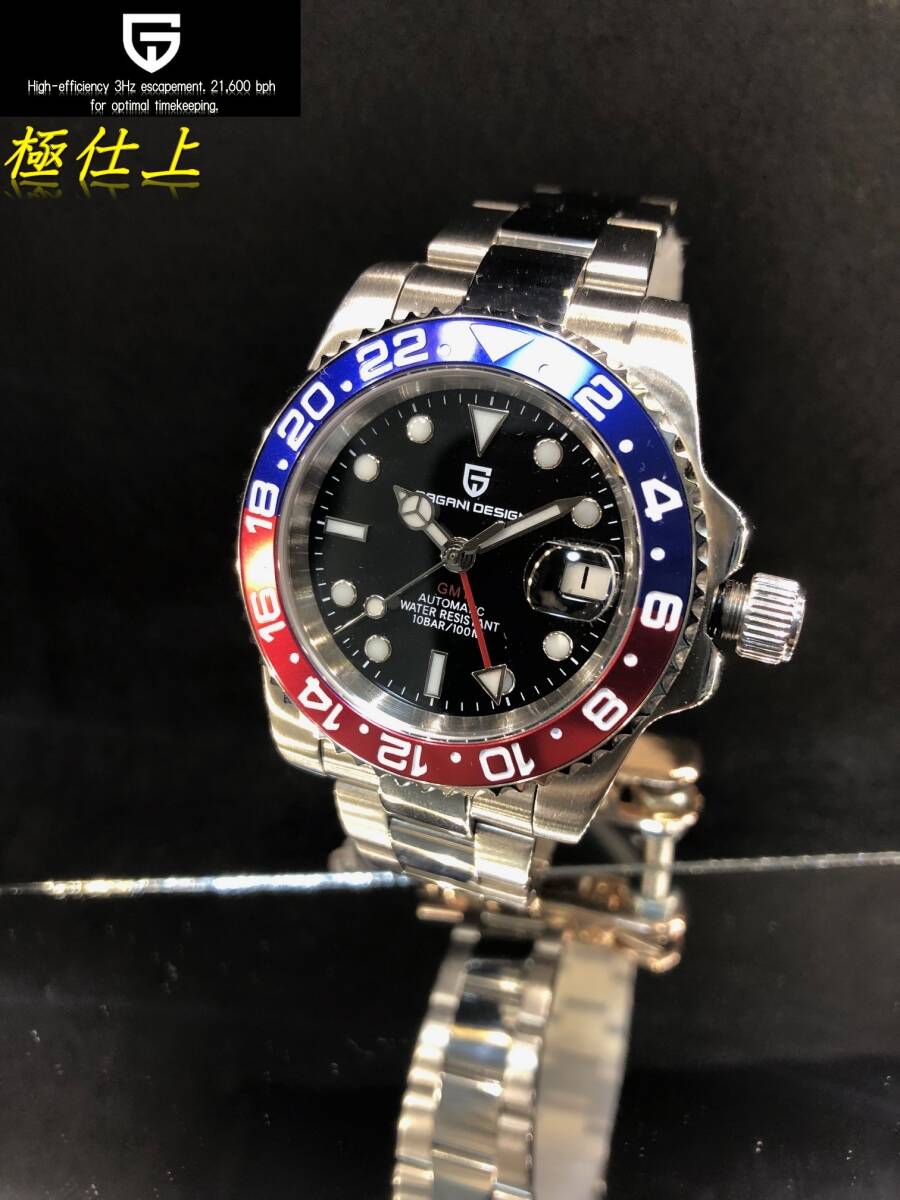 ■極仕上/調整済/10日保証付/新品に極めて近い1回だけ使用USED・中古品(GMTマスターⅡオマージュ)(機械式時計)青-赤ベゼル