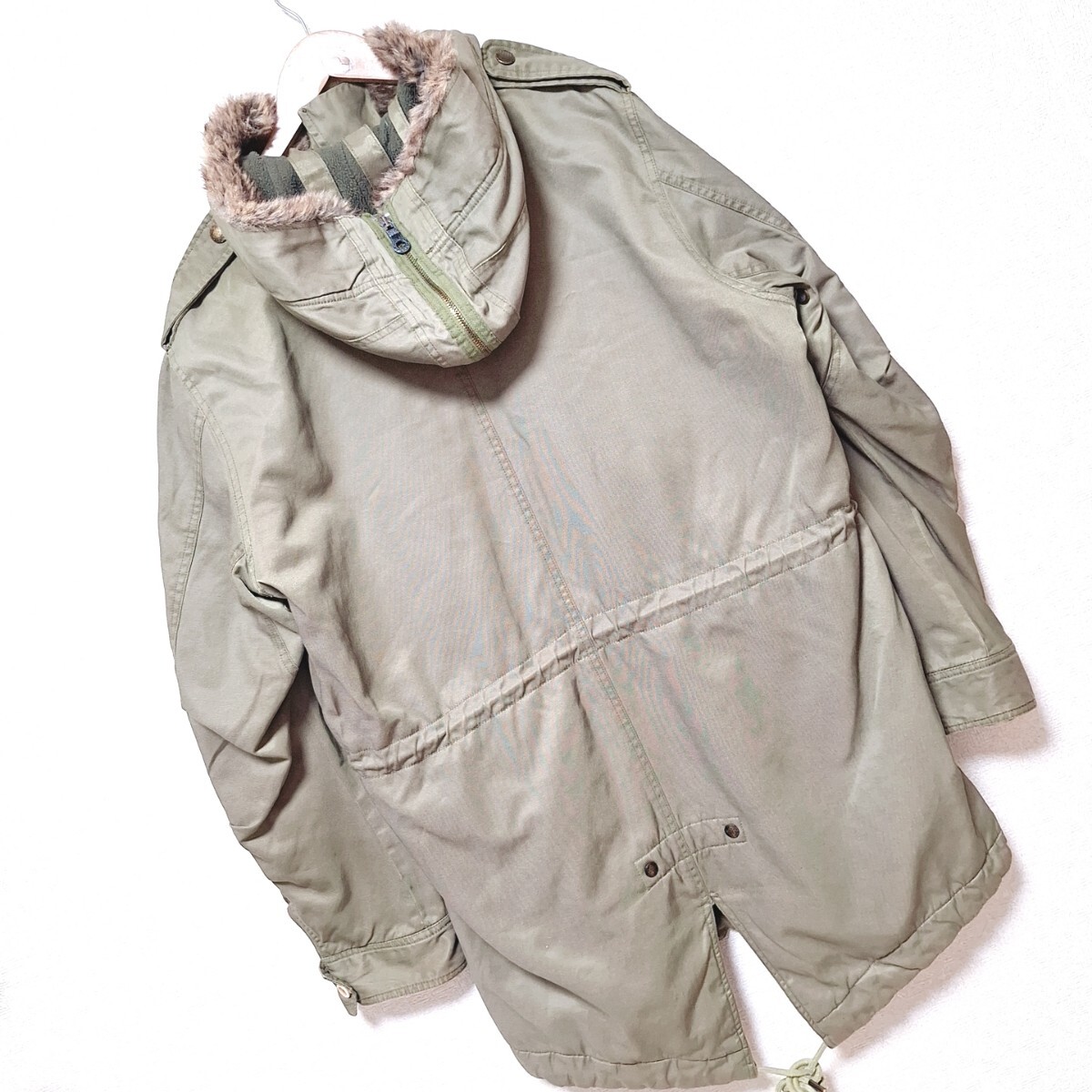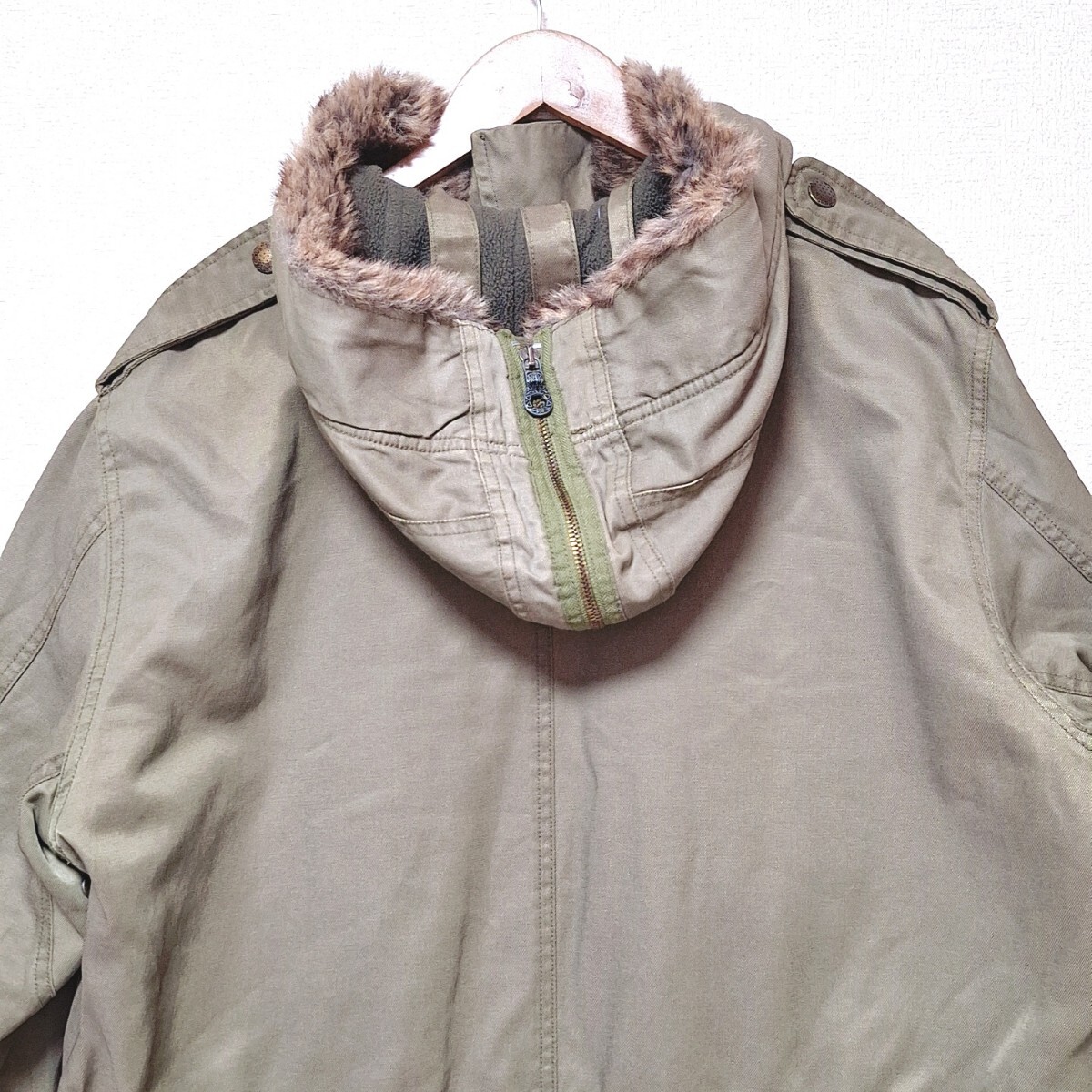 W966【DIESEL】ディーゼル フード付き ジャンパー アウター ビッグサイズ ジップポケット ワッペン カジュアル カーキ メンズ XL/ee