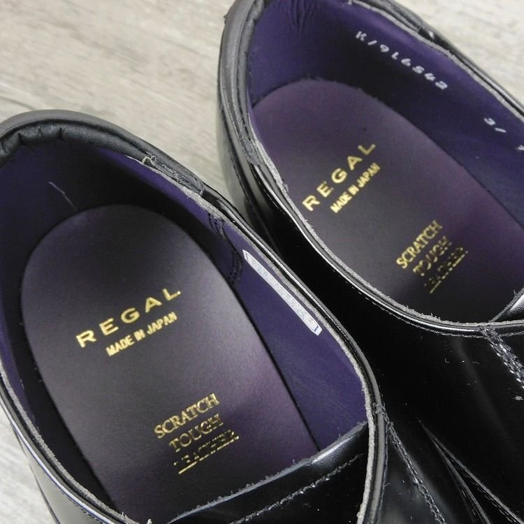 新品 訳有 1円~ リーガル REGAL 24.5cm 黒 内羽根式 ストレートチップ ビジネスシューズ セミマッケイ式 スクラッチタフレザー31TR【4942】