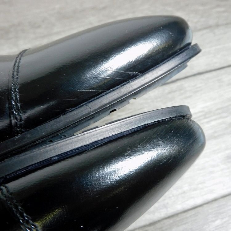 スーツが格好良く決まるハイヒール仕様の一足は、すり傷がつきやすいつま先&踵の革に
